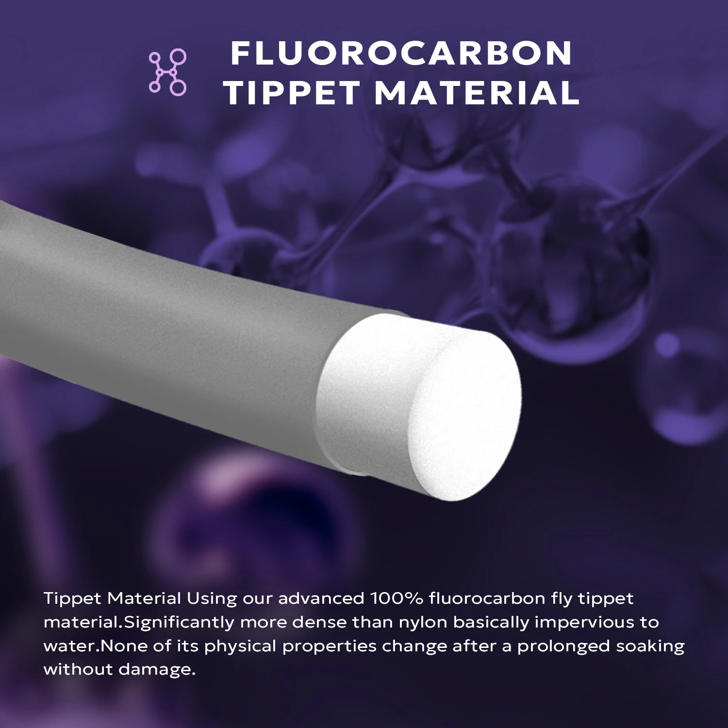 3. Fly Fishing Tippet Leader está hecho de material de fluorocarbono 100%, la superficie es más dura que el nylon, de alta resistencia y peso ligero, sustancialmente más resistente a la abrasión.