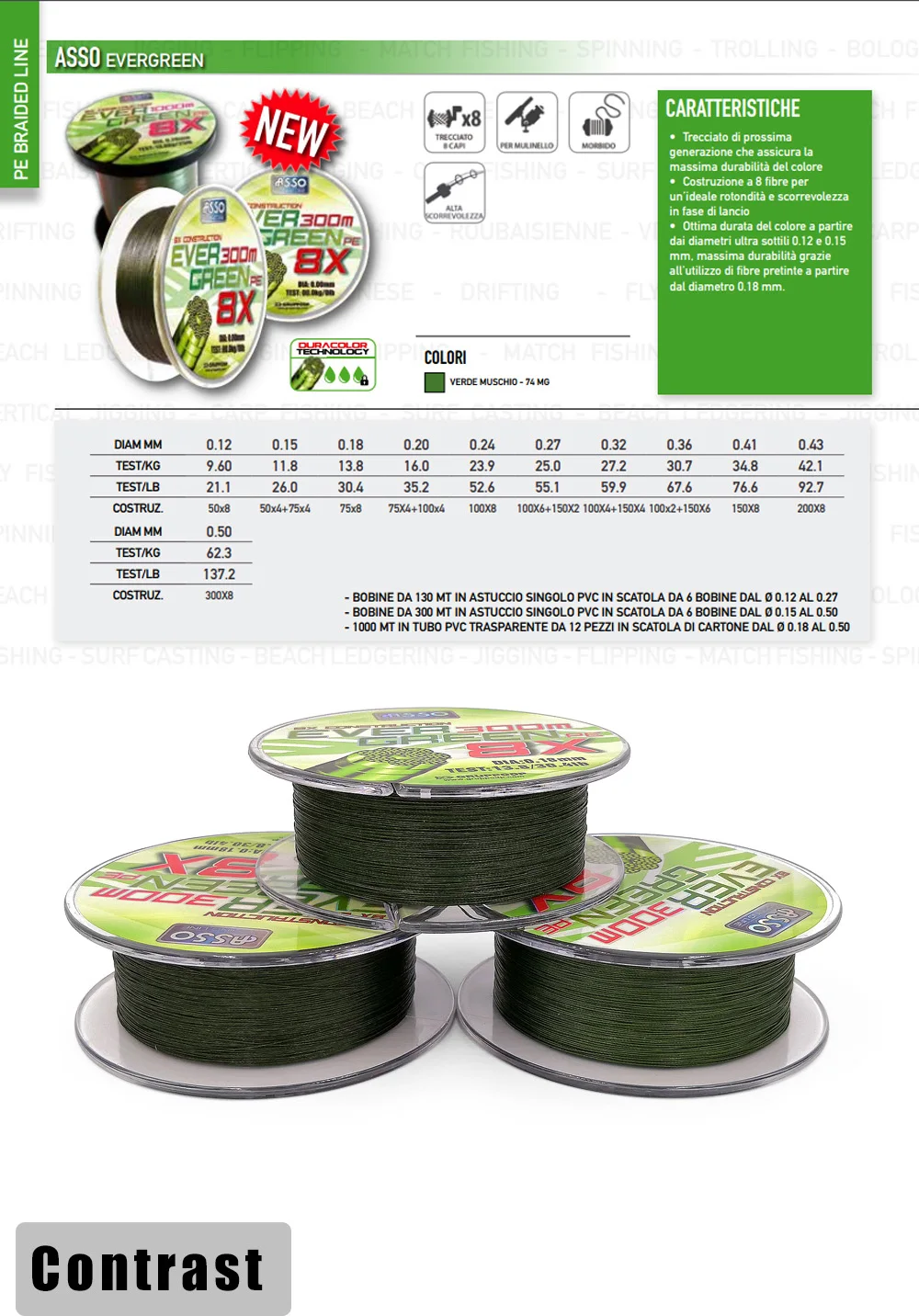 Línea de PE de 2, 8 hebras, construcción trenzada única, hecha de fibras de PE de ultra alta resistencia.