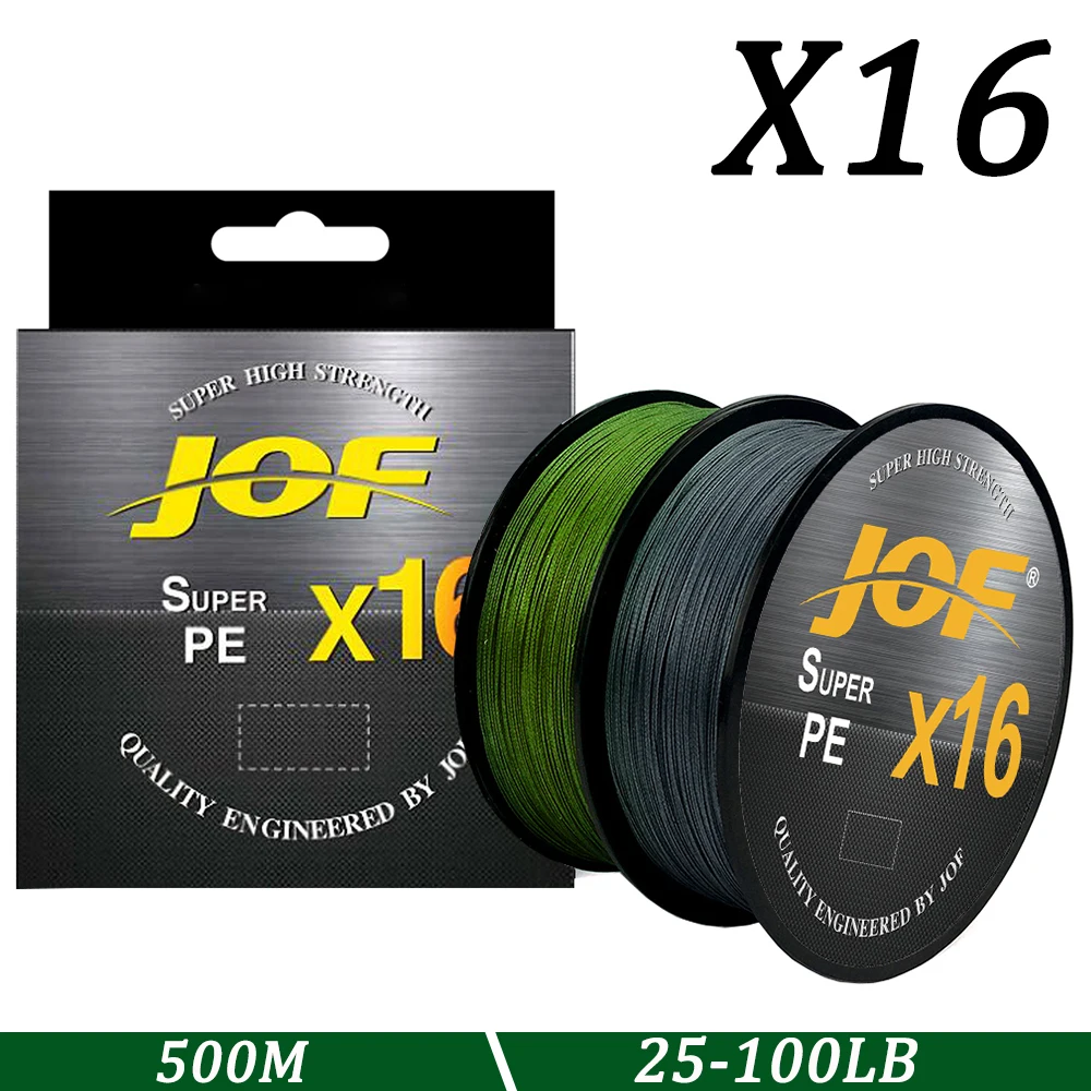 Línea trenzada de pesca de 16 hebras, cable principal multifilamento de 25-100LB, línea trenzada de PE resistente a la abrasión de 500M, línea de pesca de agua salada