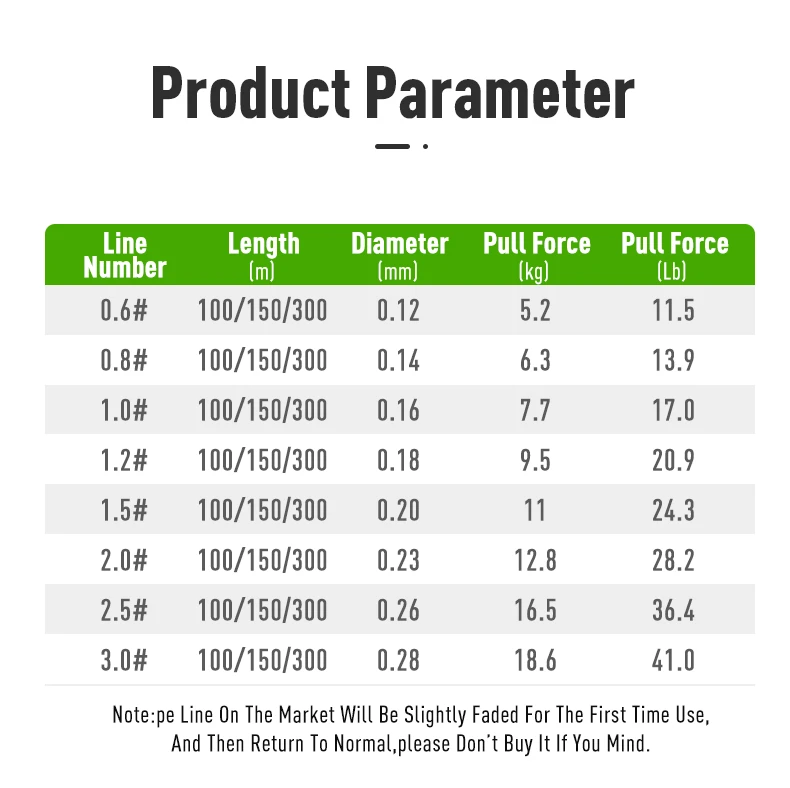 Variante: Color:300m-Green Line Number:0.6-0.12mm 11.5LB