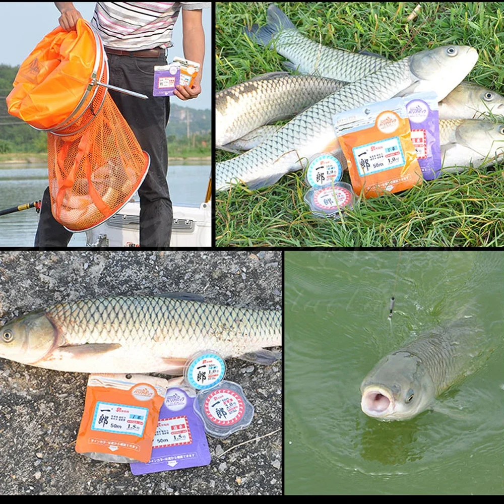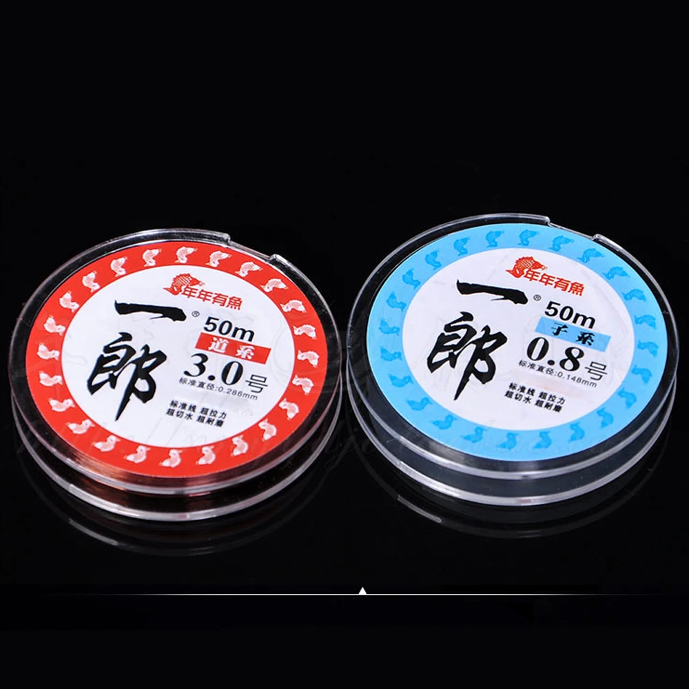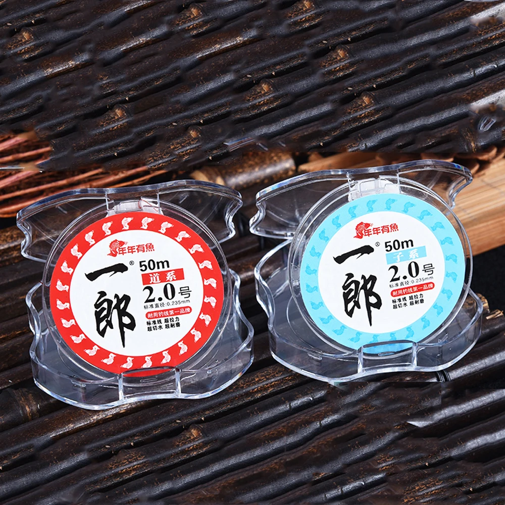 Líneas de pesca de nailon japonés, juego de sublínea principal, 50M, líneas de pesca para barcos, súper tracción, pesca en hielo de mar importada en roca, sin enrollar