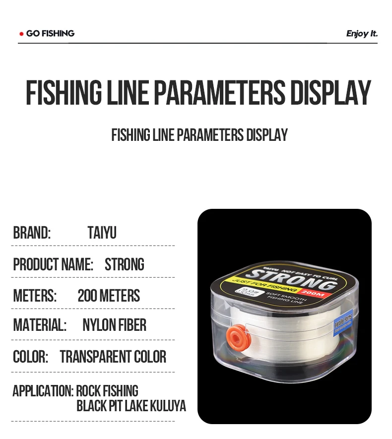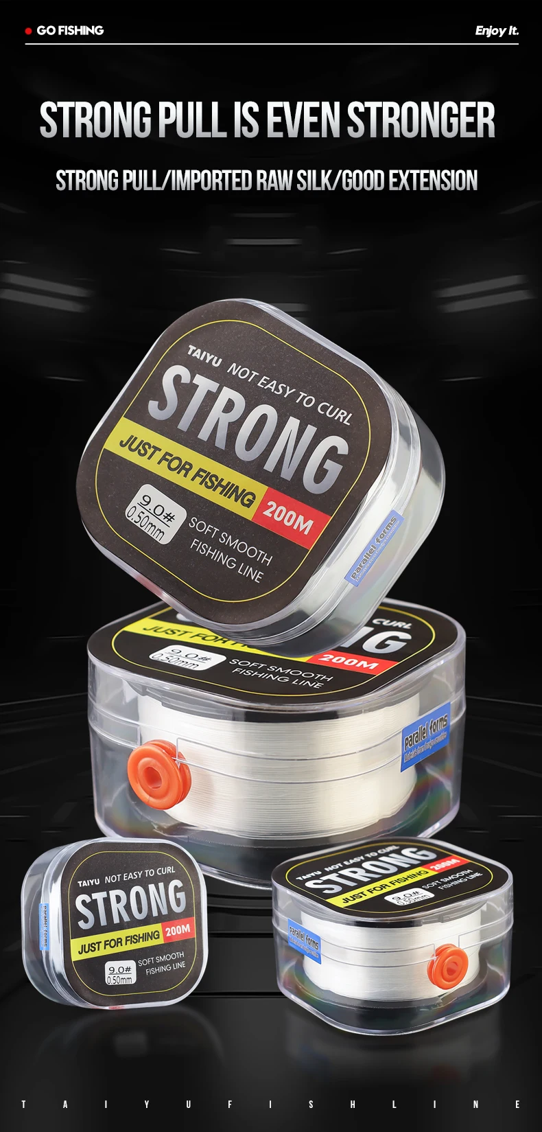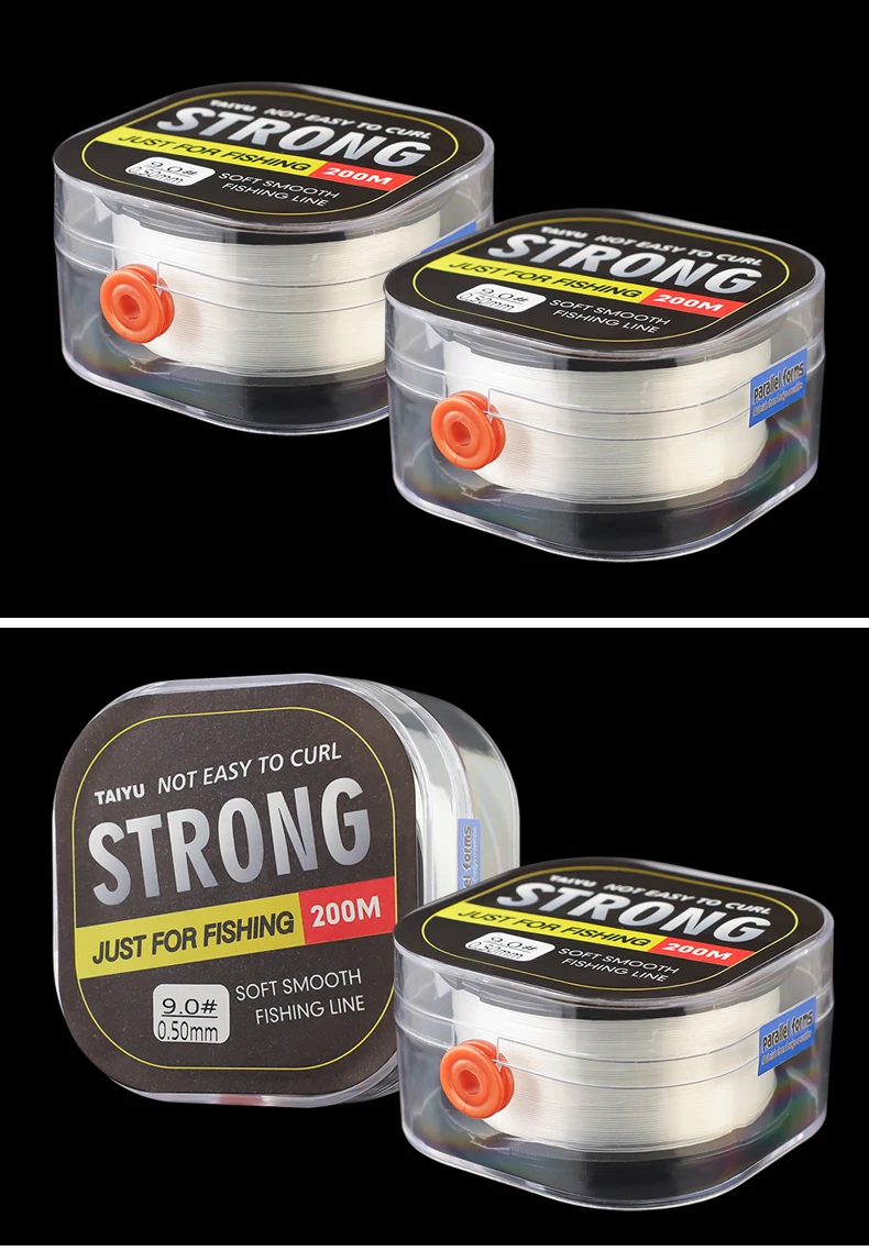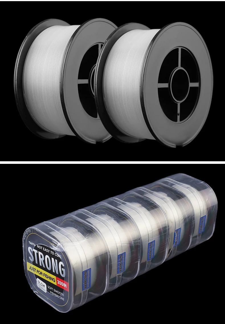Líneas de pesca de nailon transparente de 200m para agua salada, cordón de nailon de agua dulce, alambre de pesca monofilamento fuerte de fluorocarbono