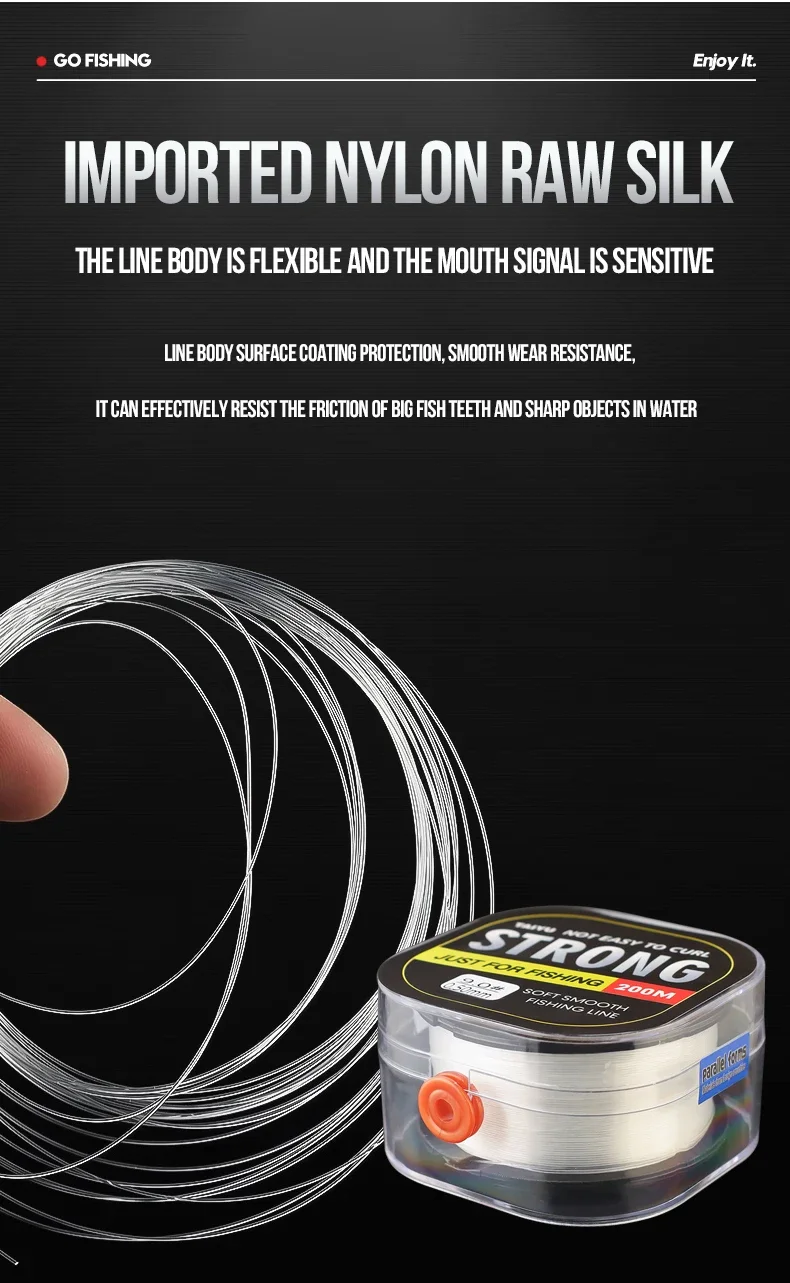 Líneas de pesca de nailon transparente de 200m de Japón para agua salada, cordón de nailon de agua dulce, alambre de pesca monofilamento fuerte de fluorocarbono
