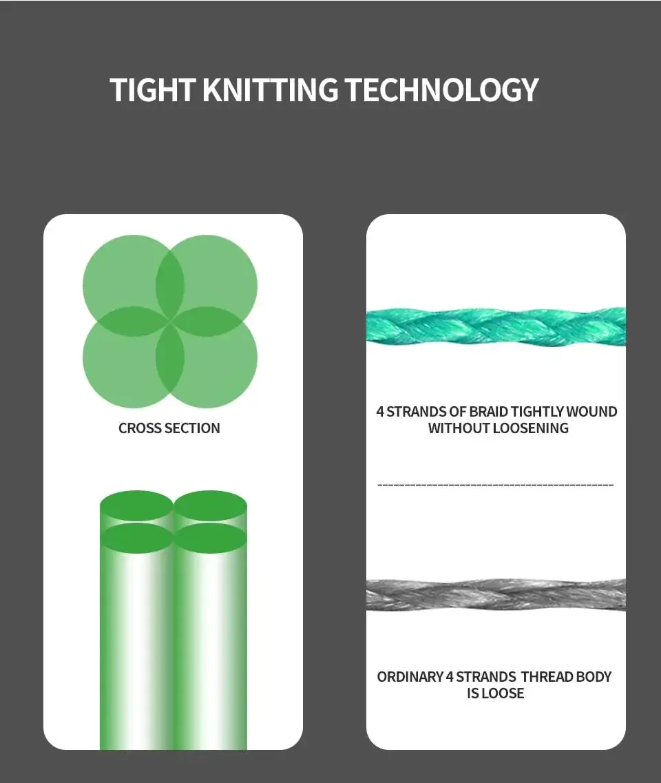 Línea de 2,4 hilos PE, material de Japón, construcción trenzada única, hecha de fibras PE de resistencia ultraalta.