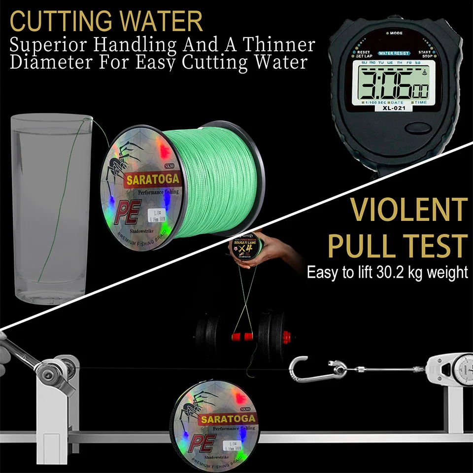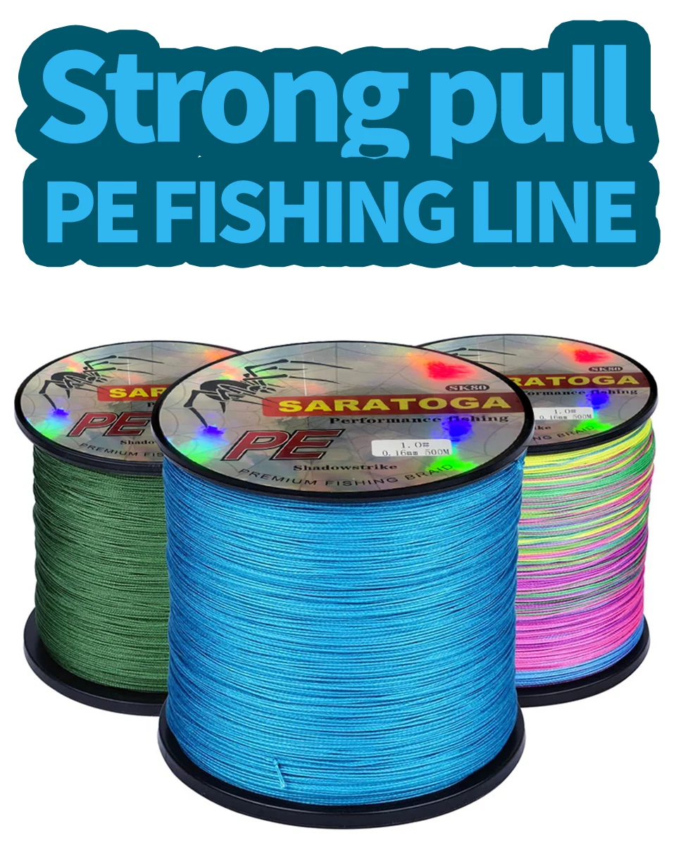 Línea de 2,4 hilos PE, material de Japón, construcción trenzada única, hecha de fibras PE de resistencia ultraalta.
