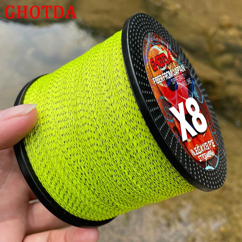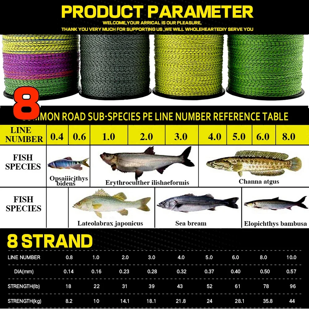 1: Línea de PE X8 Strands, construcción única de trenza moteada, hecha de fibras de PE de resistencia ultraalta.