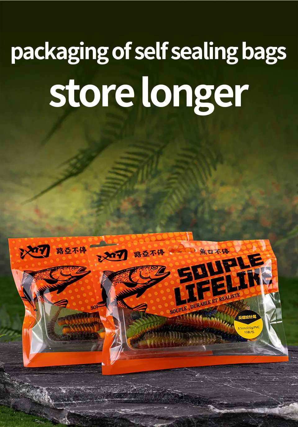 Cebo muy suave pero resistente, luce muy bien tal como en el sitio web. Solo falta probarlo. Pero debería funcionar de manera excelente.