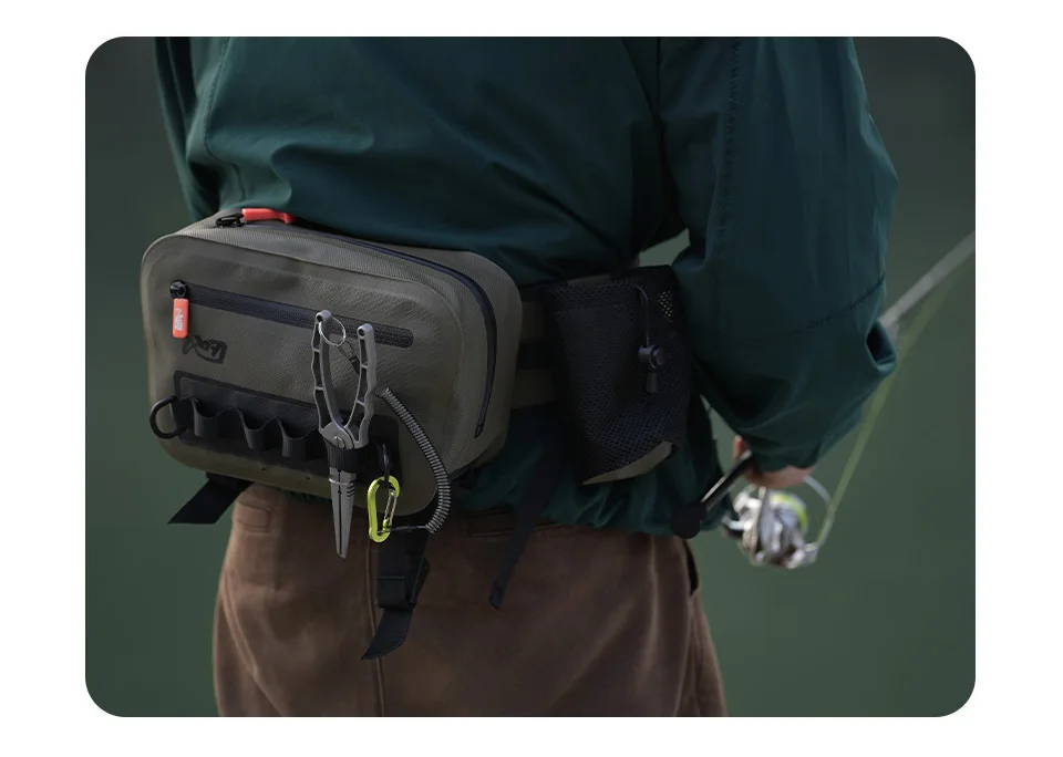 Esta versátil riñonera también funciona como bolso cruzado y brinda fácil acceso a sus aparejos de pesca mientras viaja.
