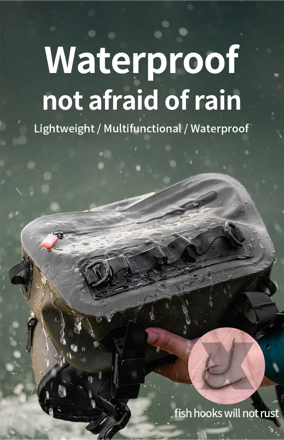 Elaborado con material impermeable de primera calidad, lo que garantiza que sus señuelos y líneas de pesca permanezcan secos en cualquier clima.