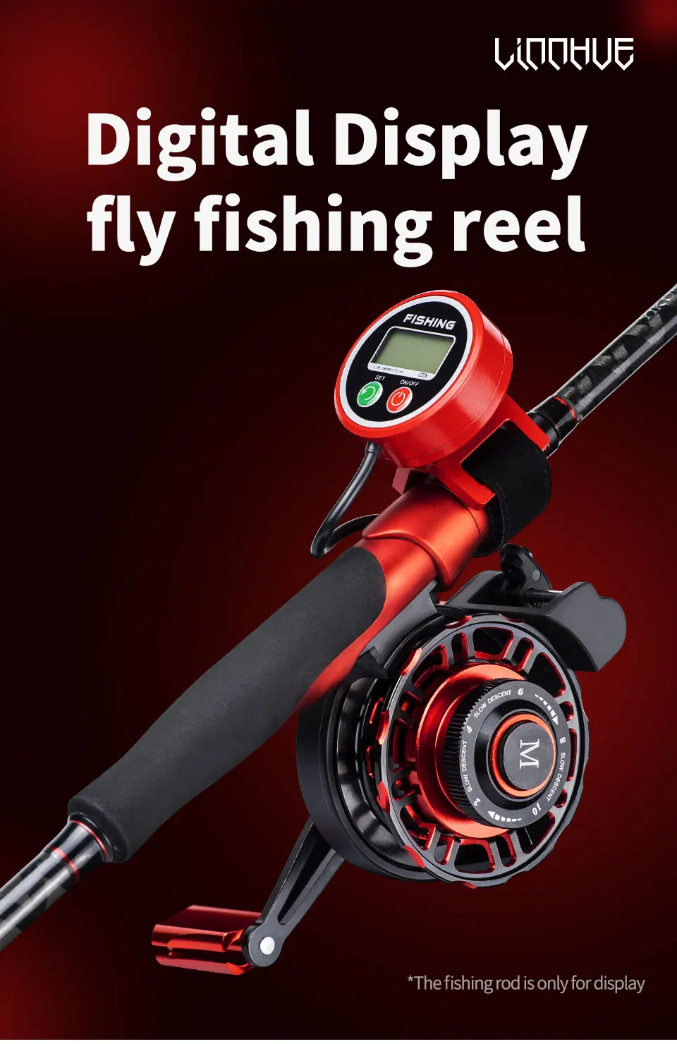 LINNHUE-carrete de pesca con mosca, pantalla Digital, en línea, 3,6: 1, equipo electrónico