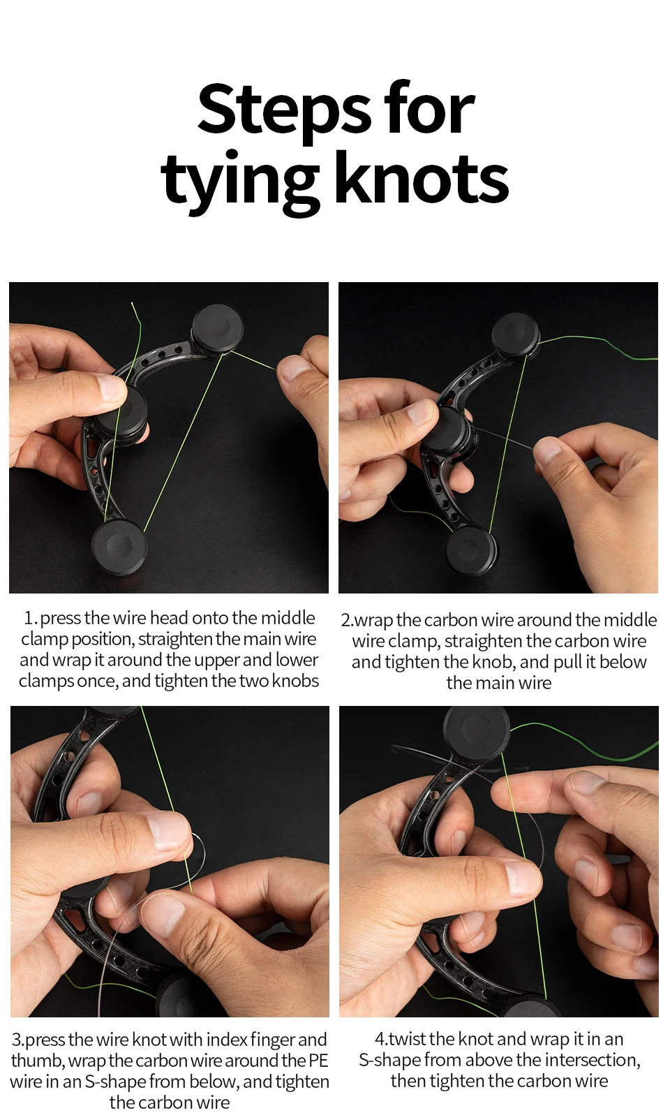 Resistencia al desgaste y durabilidad: el anudador de pesca está hecho de aluminio y caucho, tiene resistencia al desgaste y durabilidad, y puede apretar el hilo de pescar sin dolor.