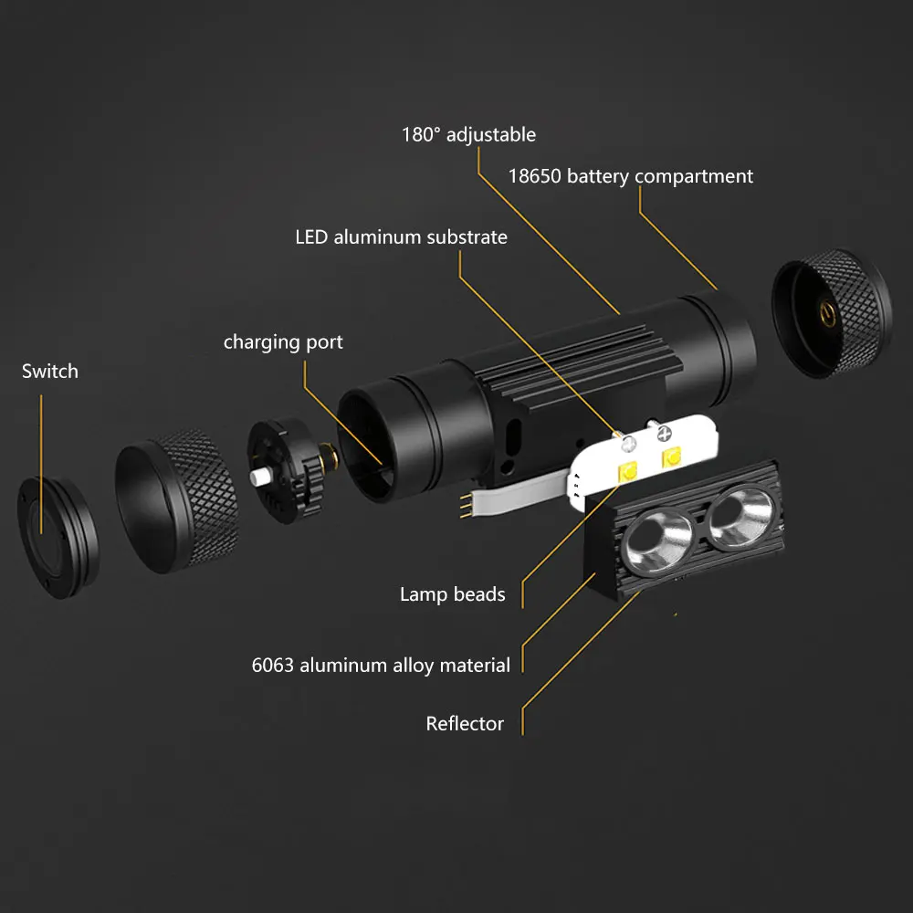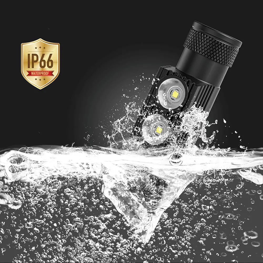●● Linterna frontal impermeable: La vida útil de la salida LED es muy brillante y resistente al agua, hasta 100.000 horas.