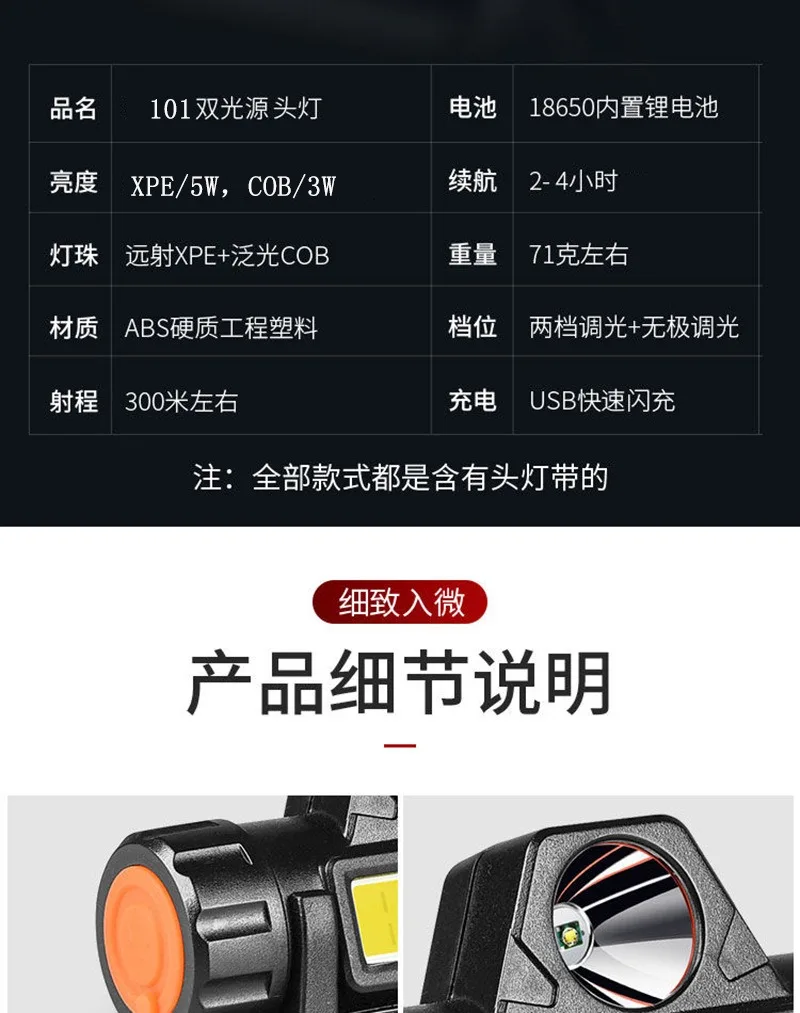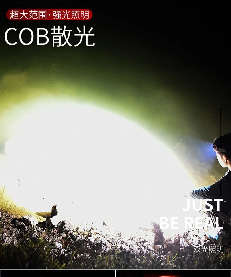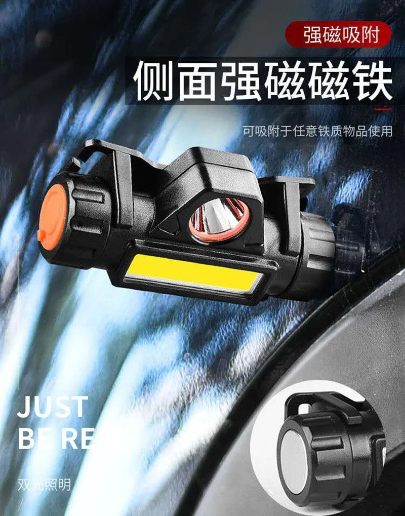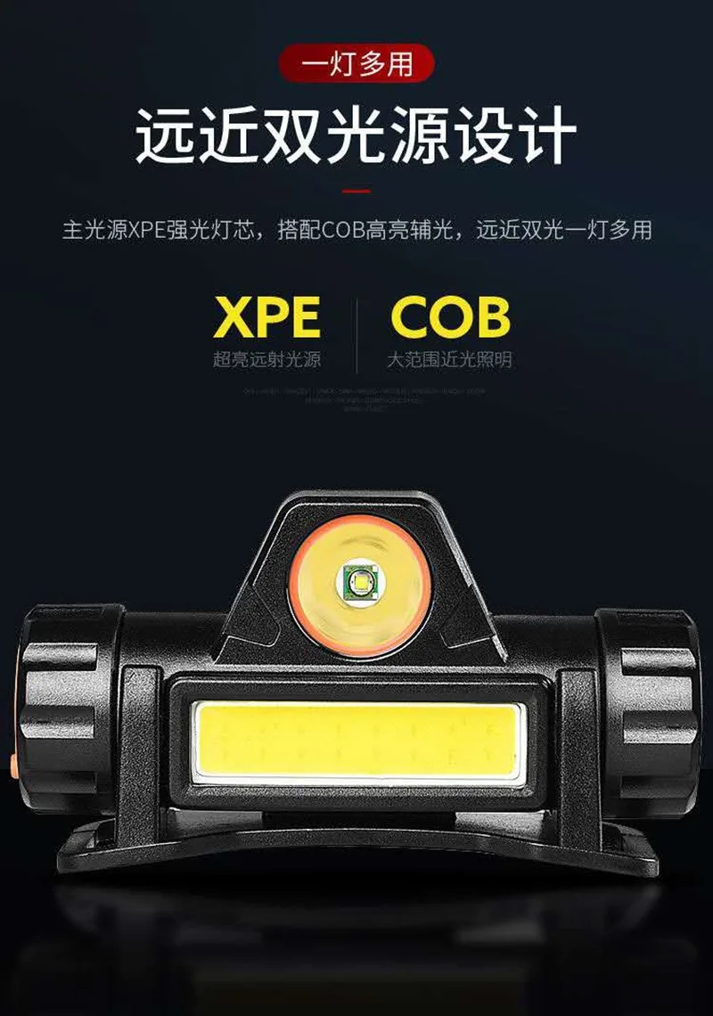 2 botones independientes para 6 modos de luz (luz alta COB - luz baja COB - luz estroboscópica COB - luz alta XPE - luz baja XPE - luz estroboscópica XPE) para satisfacer sus diferentes requisitos.
