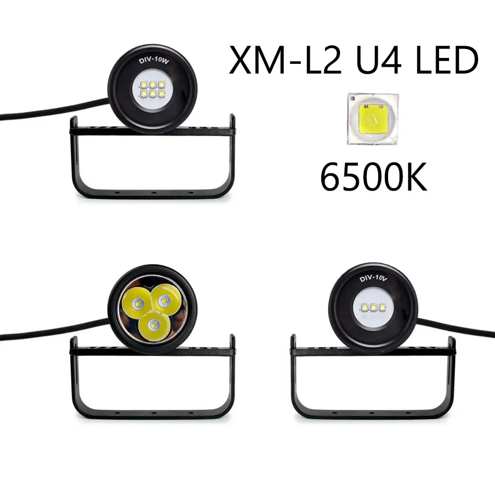Handheld submersible flashlight with a color temperature of 3 * XM-L2 U4 LED 6500K, brightness up to 3000 lumens, and a range of up to 72 meters
