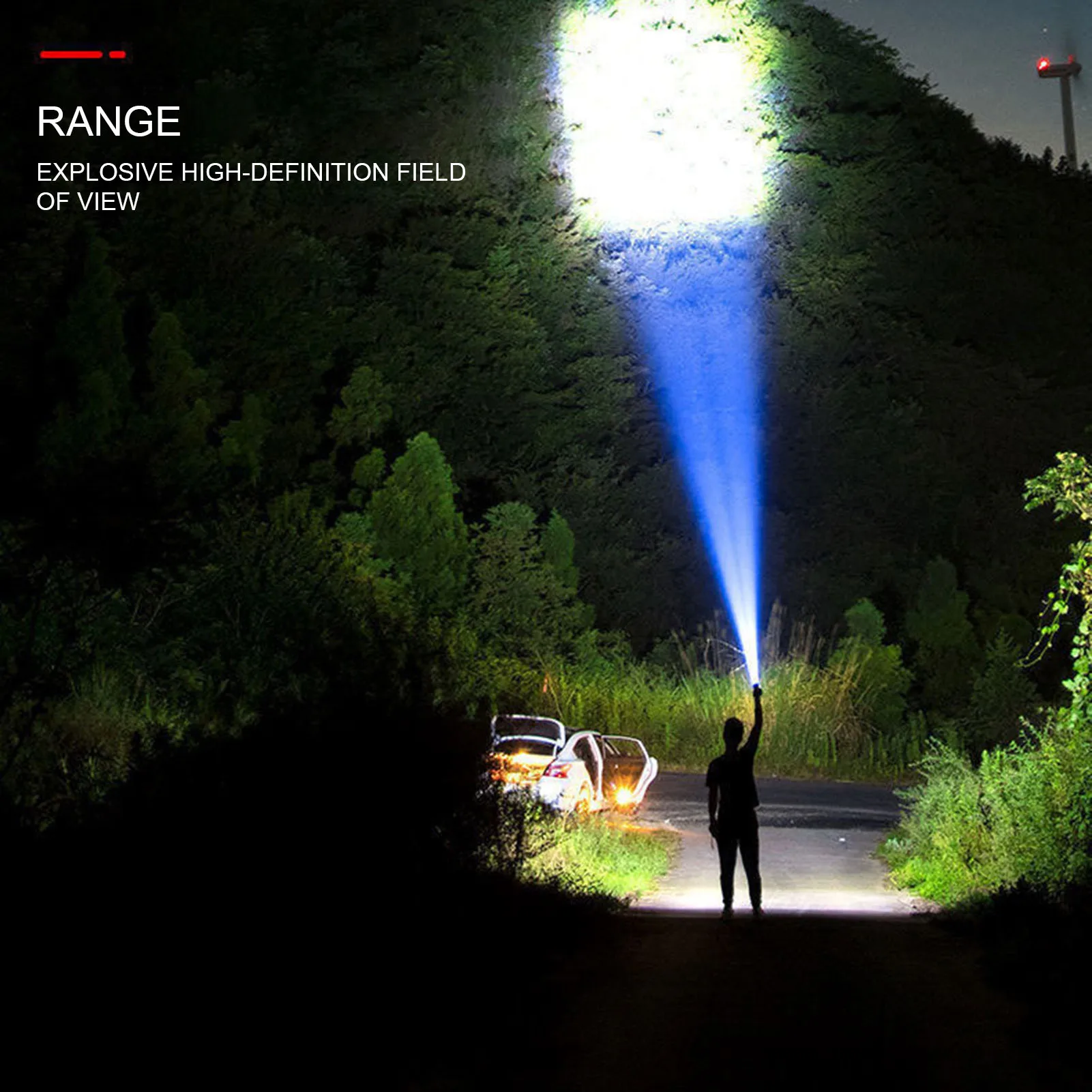 Linterna de amplio rango de iluminación de largo alcance: con un rango de enfoque largo y una amplia cobertura de iluminación, esta linterna garantiza que pueda ver lejos e iluminar un área grande. Ideal para navegar en entornos oscuros durante viajes de camping o senderismo.