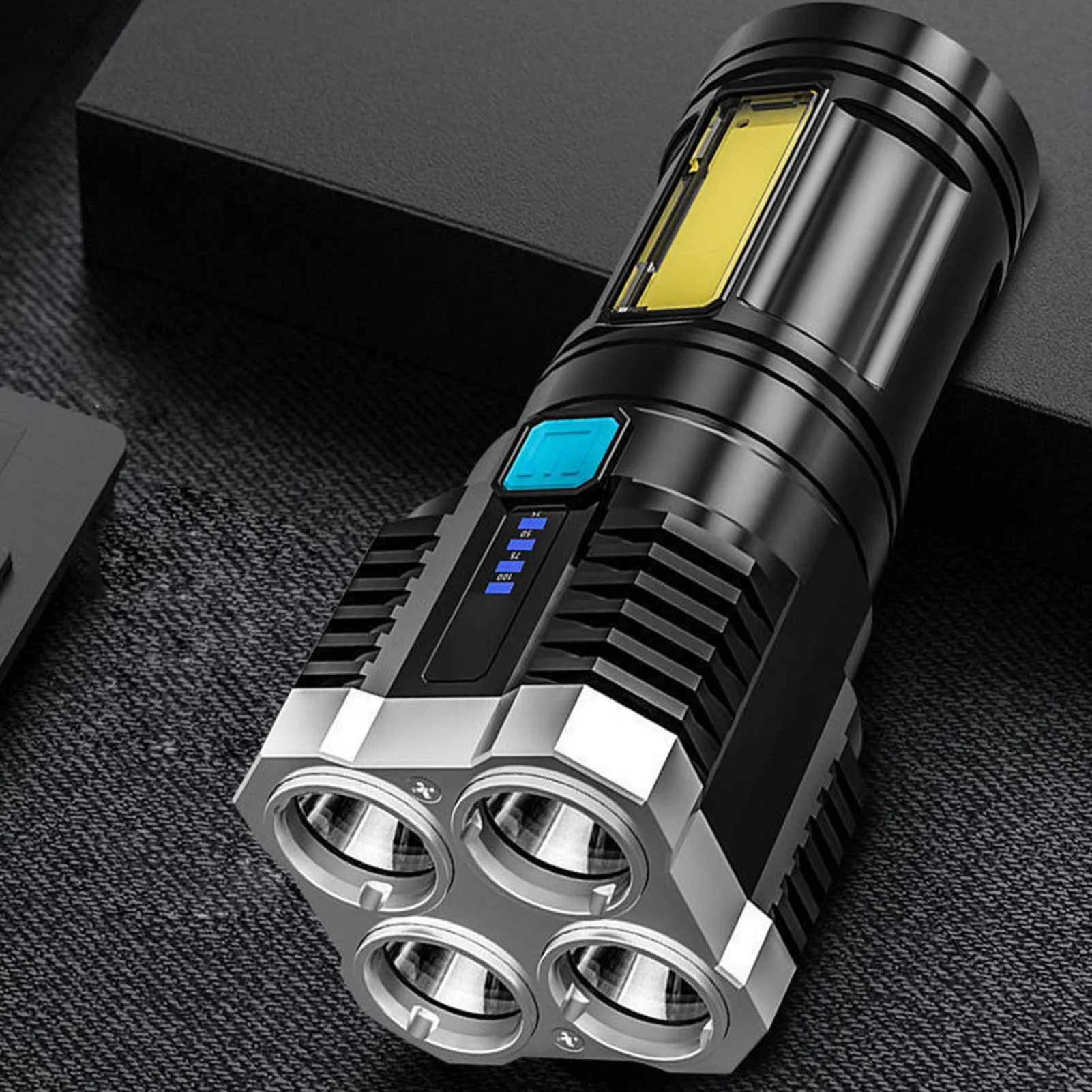 Linterna impermeable con ajuste de 4ª marcha: con 4 niveles de brillo ajustables y un diseño impermeable, esta linterna ofrece versatilidad y durabilidad para uso en exteriores en diversas condiciones climáticas. Manténgase preparado para cualquier situación mientras camina o acampa, incluso en días lluviosos o nevados.