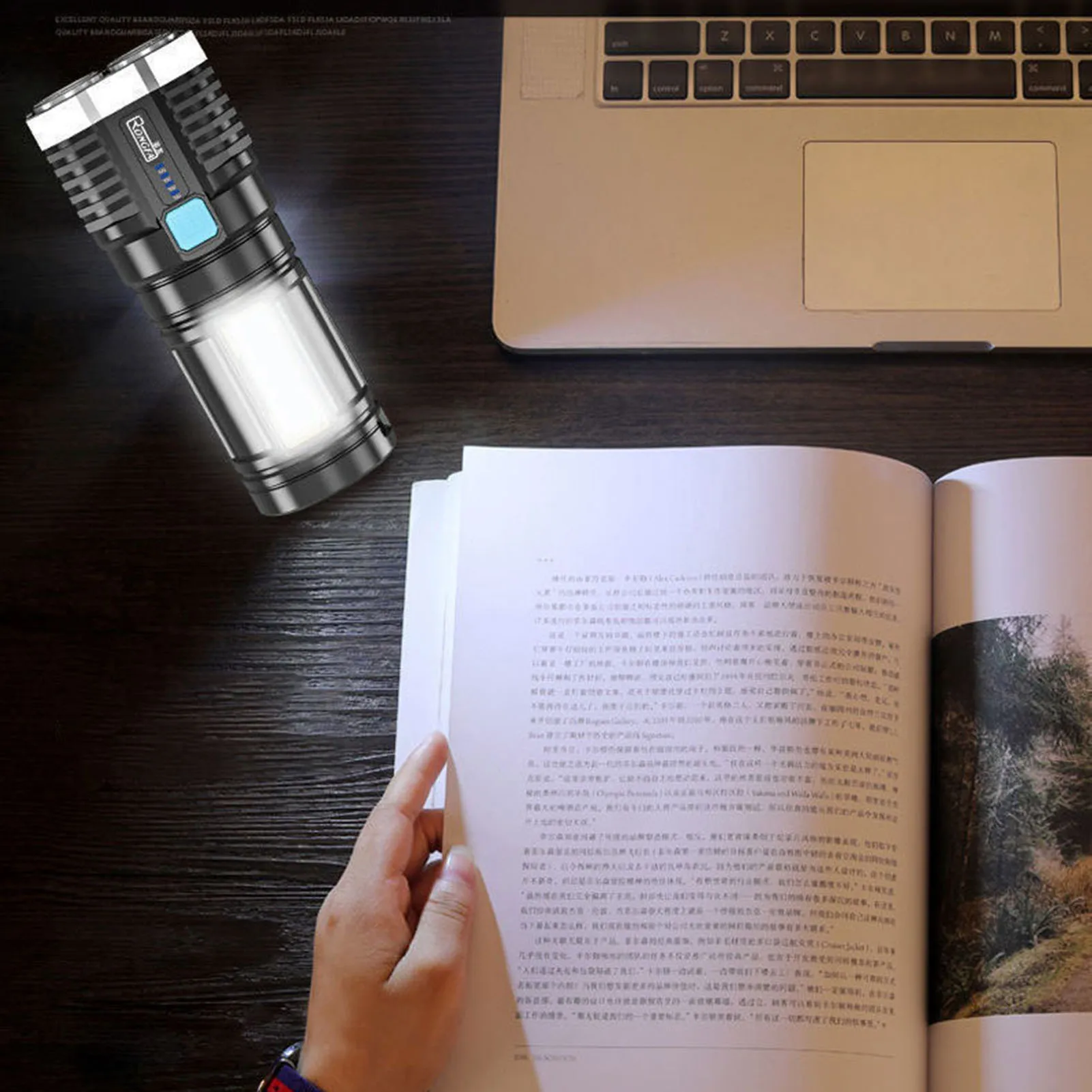 Linterna DE PROTECCIÓN DE sobreimpulso de carga USB: Esta linterna cuenta con carga USB con protección de sobreimpulso, lo que garantiza una carga segura y eficiente. Diga adiós a las baterías desechables y disfrute de la comodidad de recargar sobre la marcha.
