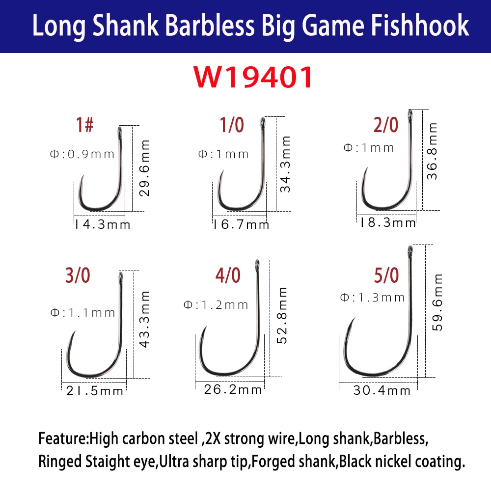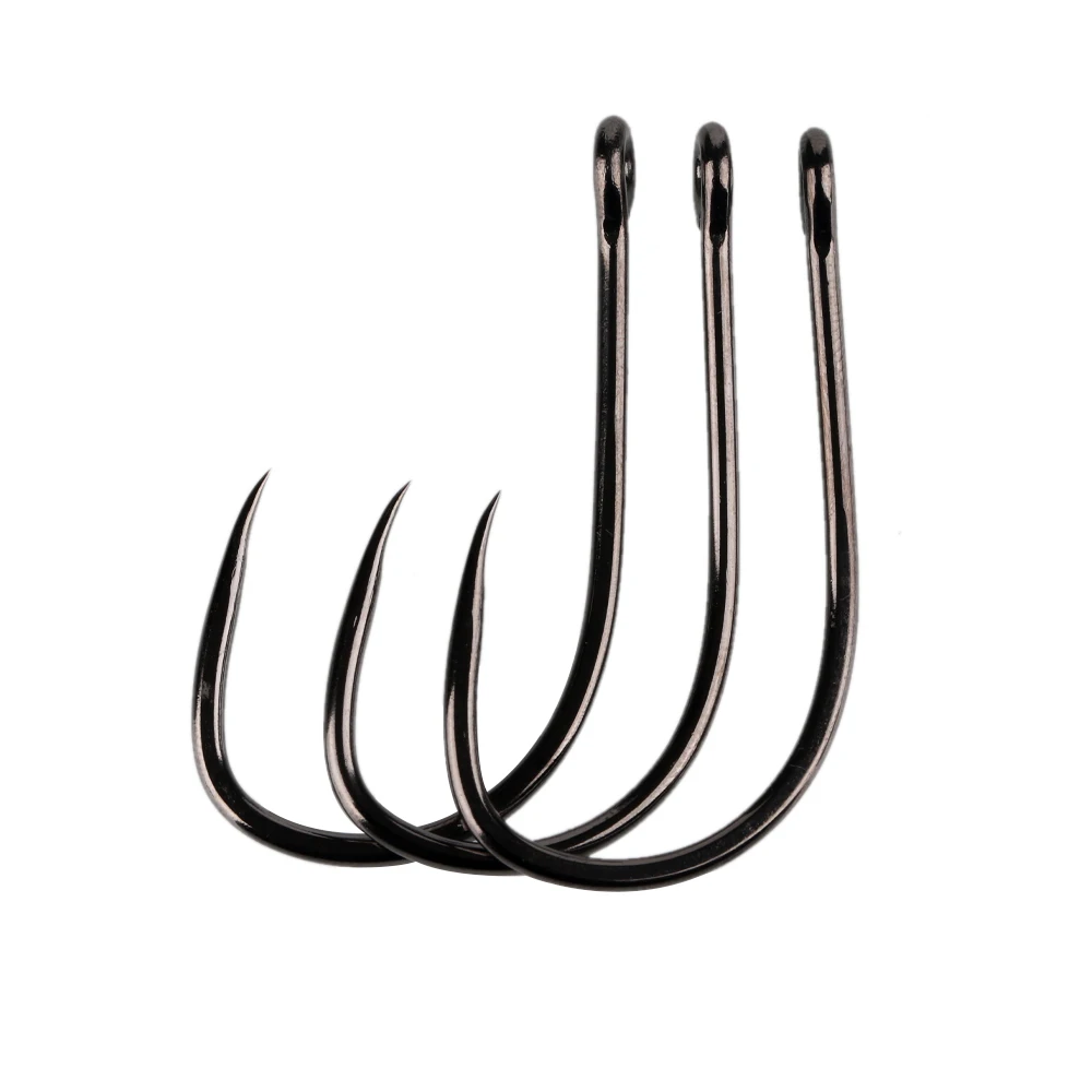 Características: Acero rico en carbono, alambre fuerte 3X, vástago corto, sin barra, ojo recto anillado, Punta Ultra afilada, vástago forjado, revestimiento de níquel negro.