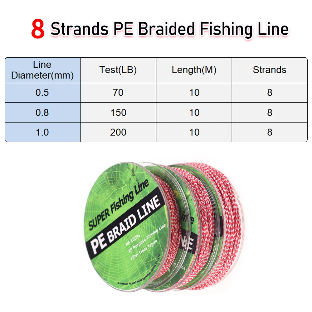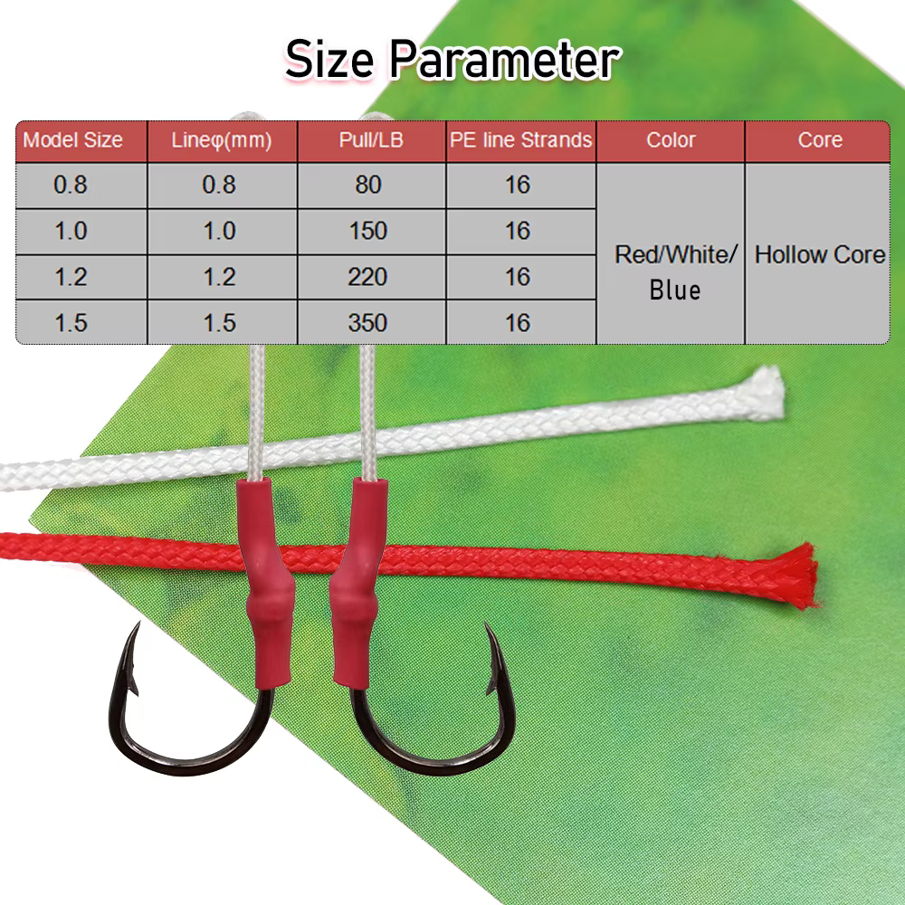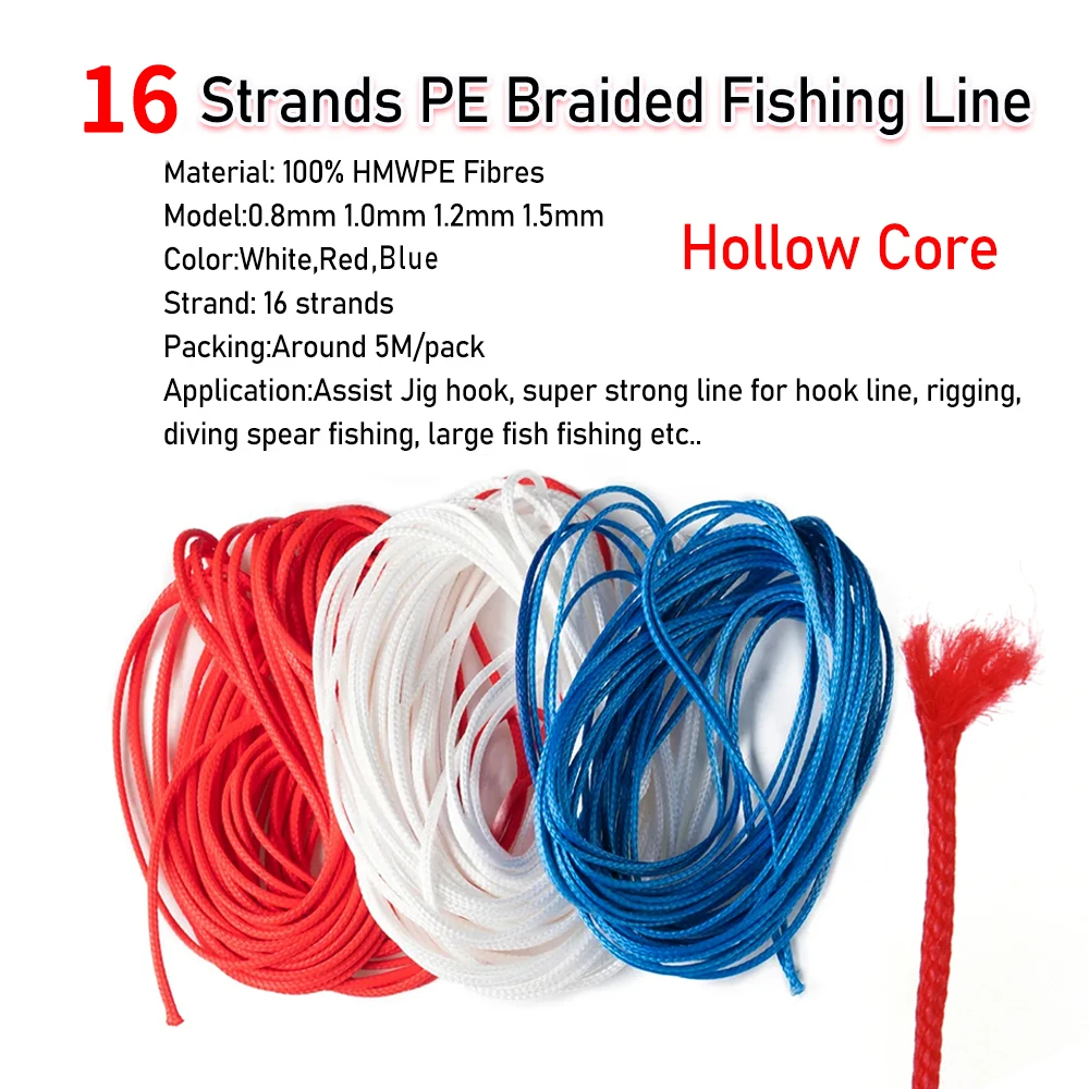 Lionriver, 10 metros, 8/16 hebras, línea trenzada de PE, aparejo de pesca en agua salada, cuerda de unión de asistencia de núcleo hueco para anzuelo de Jigging