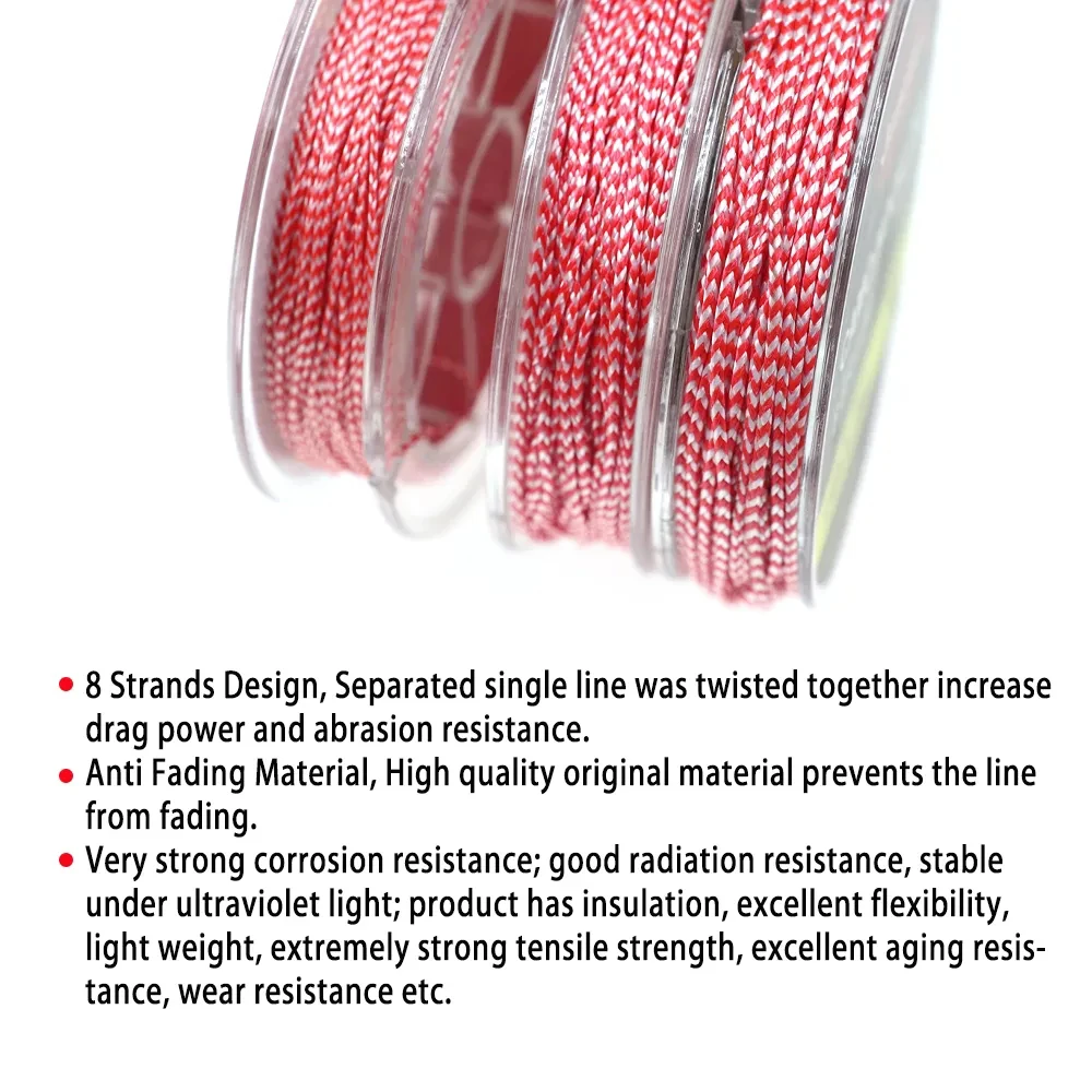 -Diseño en 8 hebras, la línea única separada se torceró y aumenta la potencia de arrastre y la resistencia a la abrasión.