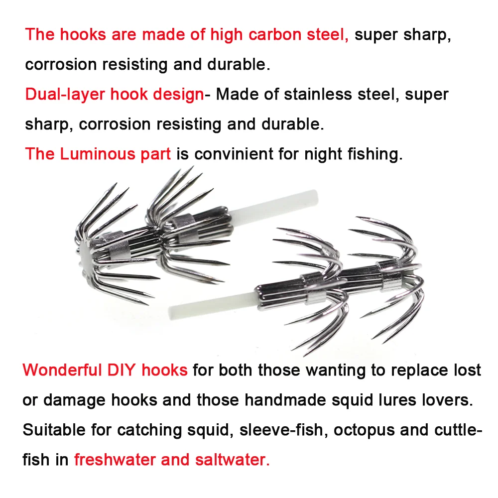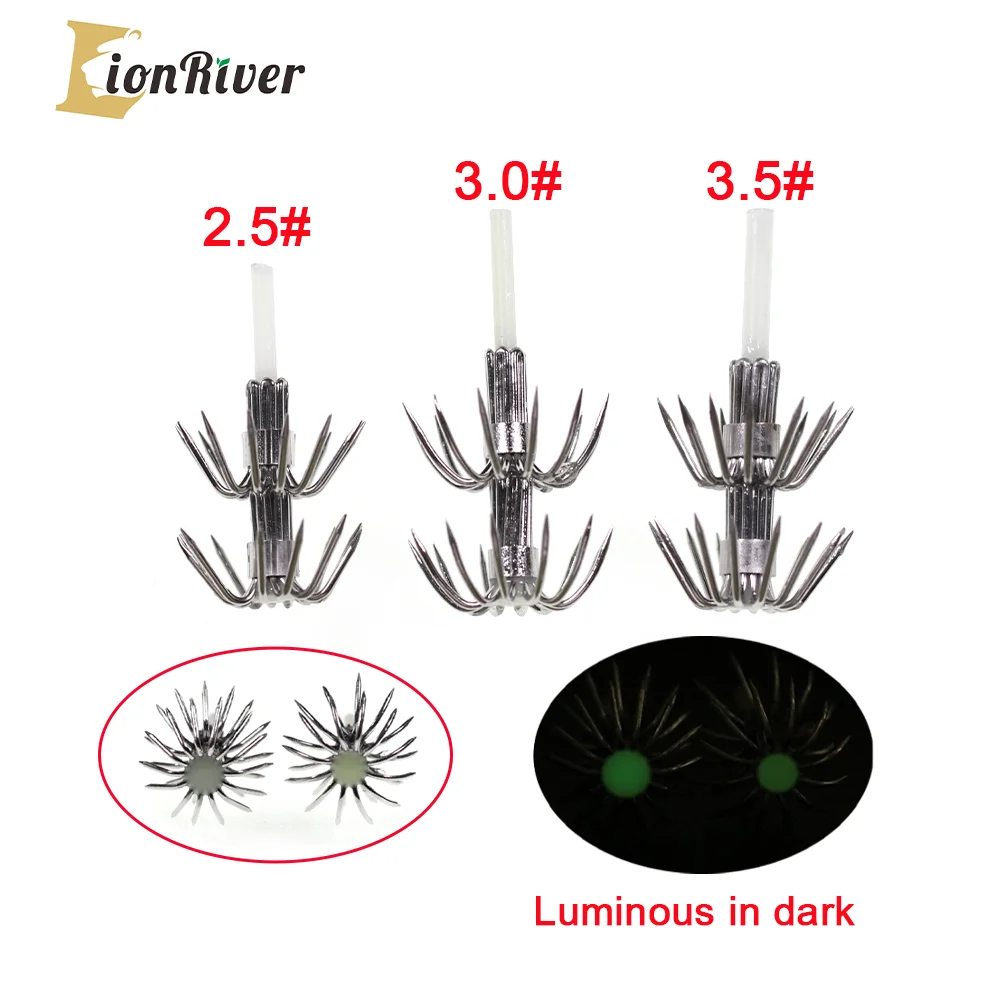 Lionriver, 20 Uds., señuelo de calamar luminoso, doble capa, sepia, pulpo, anzuelo, cebos duros, señuelo de pesca nocturna, herramienta de fabricación DIY, aparejos