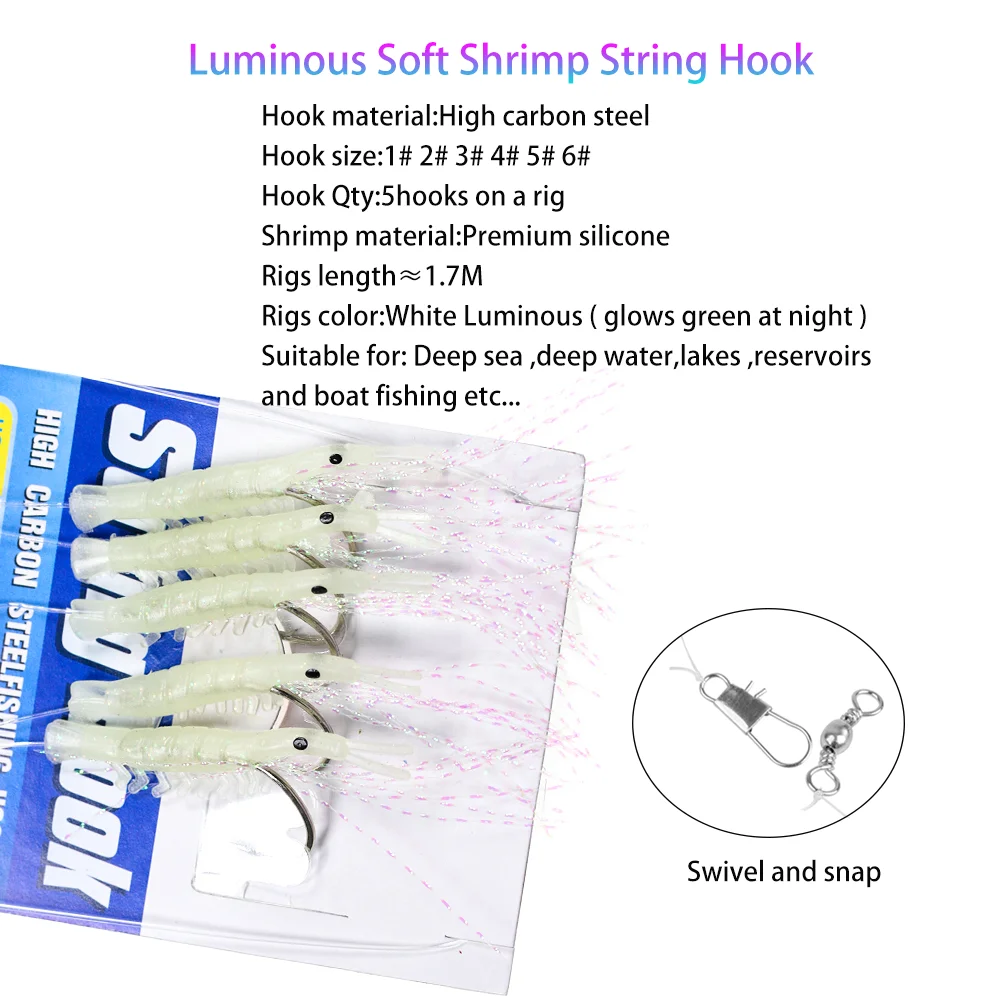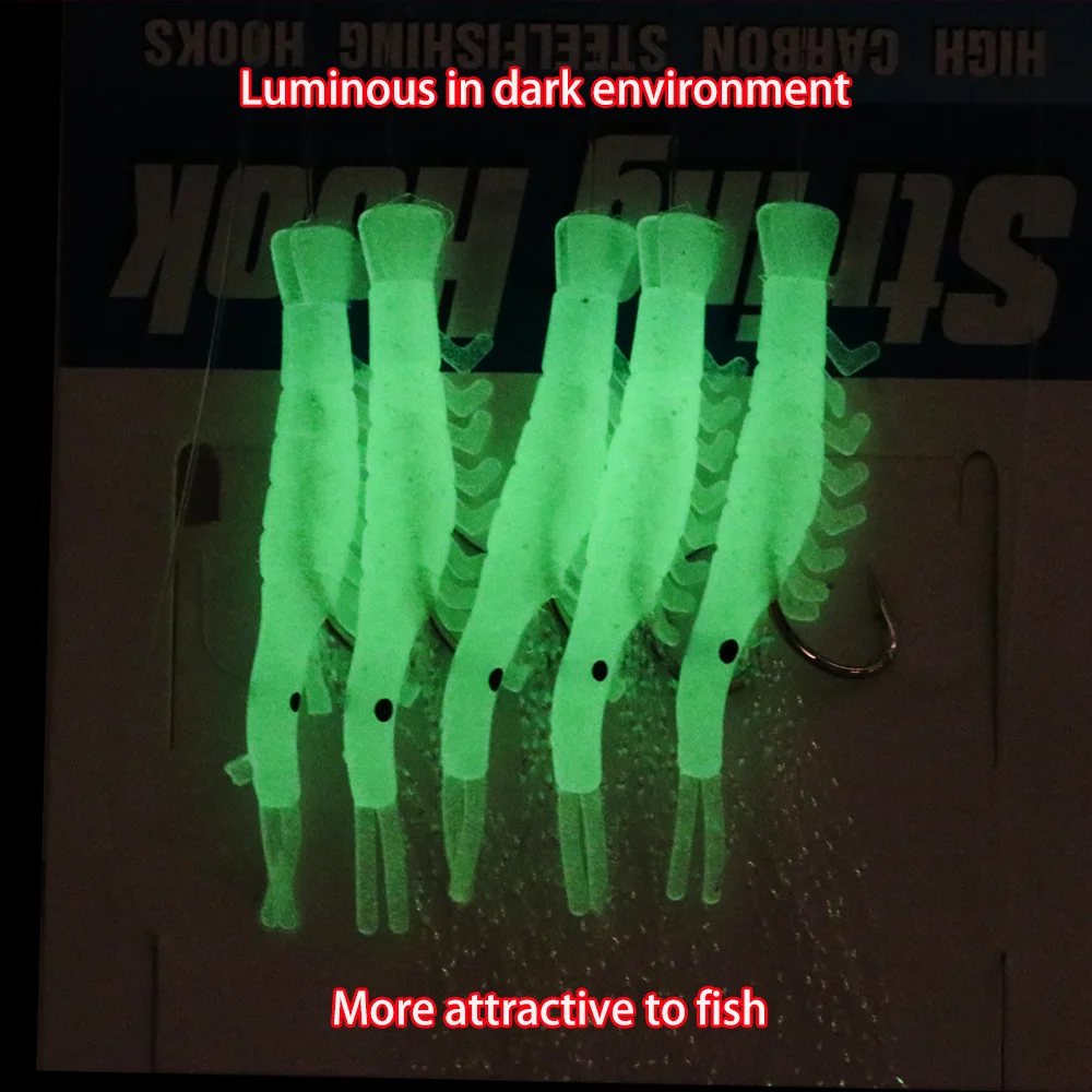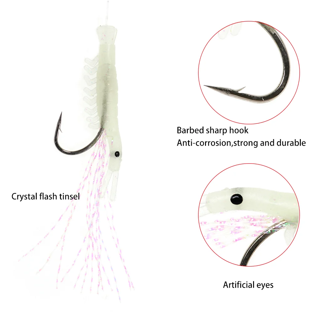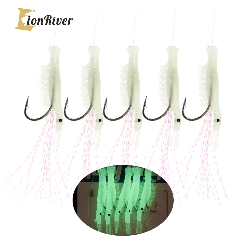 Lionriver luminoso suave Camarón oropel cuerda anzuelo señuelo de pesca cebo Sabiki Rigs Snap agua salada accesorios de pesca de agua dulce
