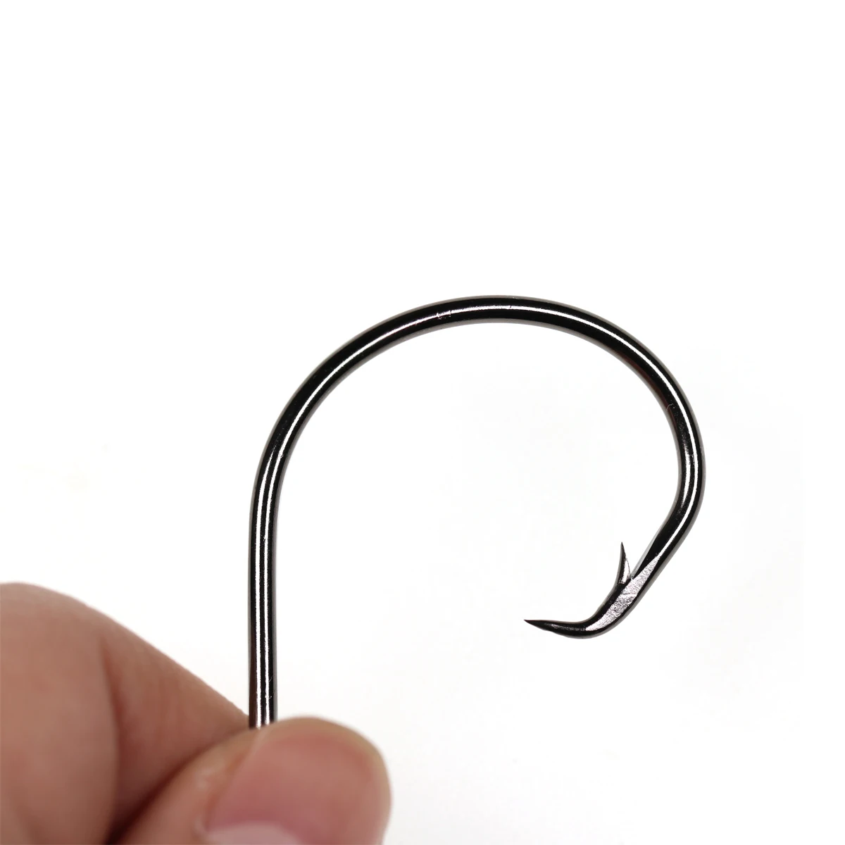 3.Diseño excepcional: con una forma curva distinta del anzuelo circular, este anzuelo de pesca no solo puede capturar peces con fuerza sino que también puede garantizar que el anzuelo se desplace hasta la esquina de la boca o el labio, reduciendo la lesión de los peces y sea fácil de quitar. anzuelos.Se utilizan habitualmente en grandes torneos de juegos.