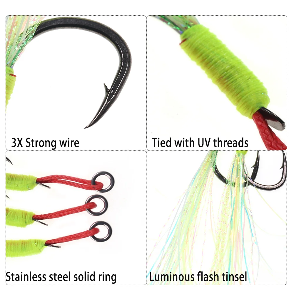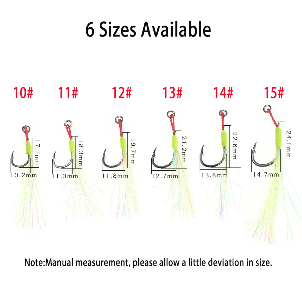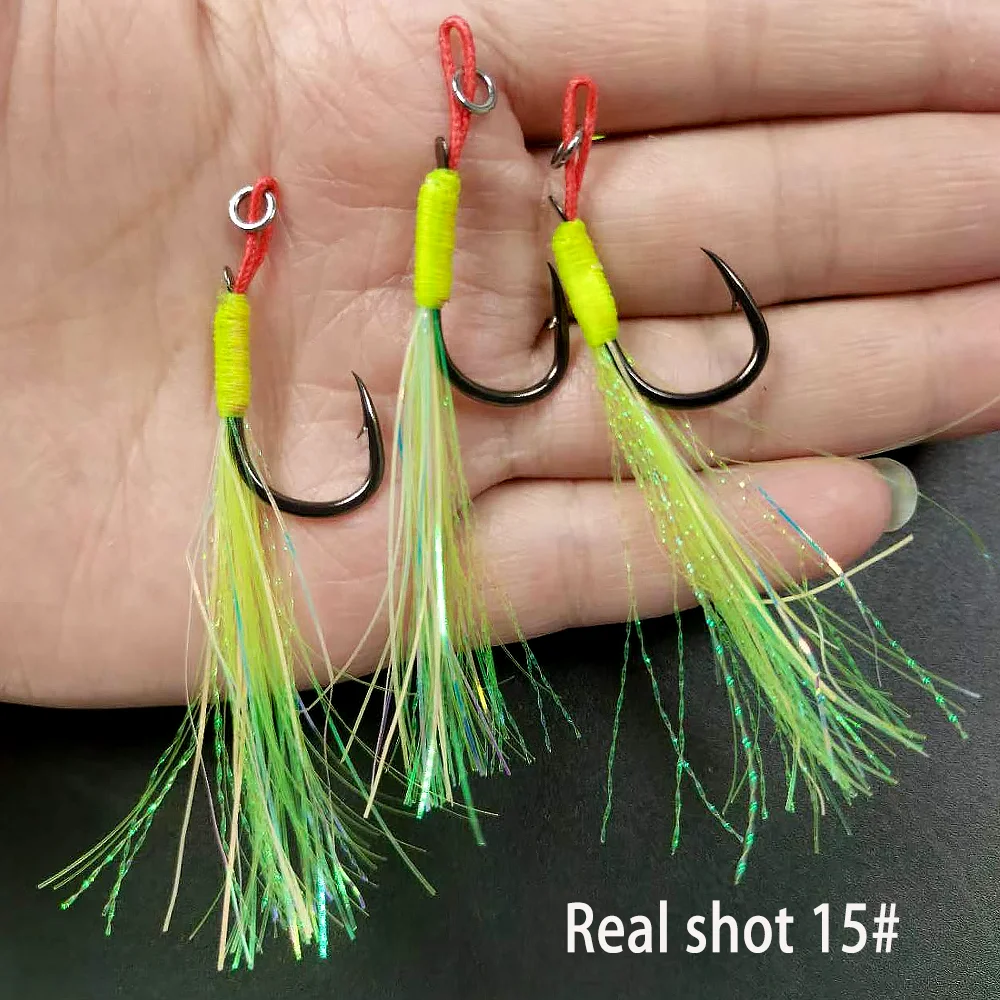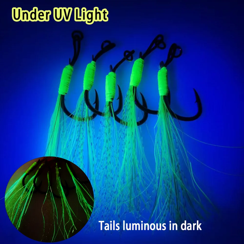 LIONRIVER, 5 uds., anzuelo de asistencia de cola de plantilla de Metal, señuelo de pesca, Jigging lento, pesca de púas, único anzuelo, línea de PE, pluma, anillo sólido