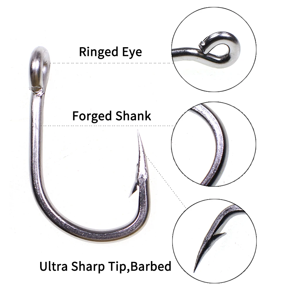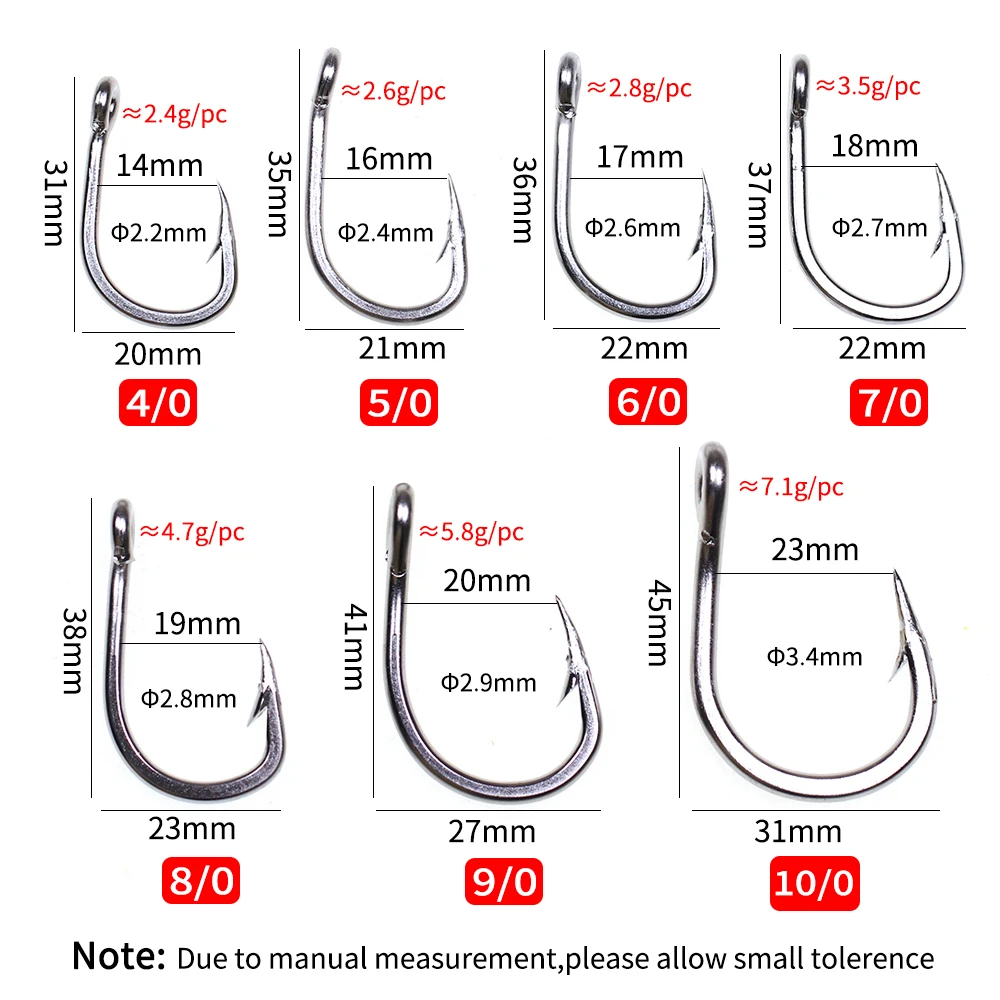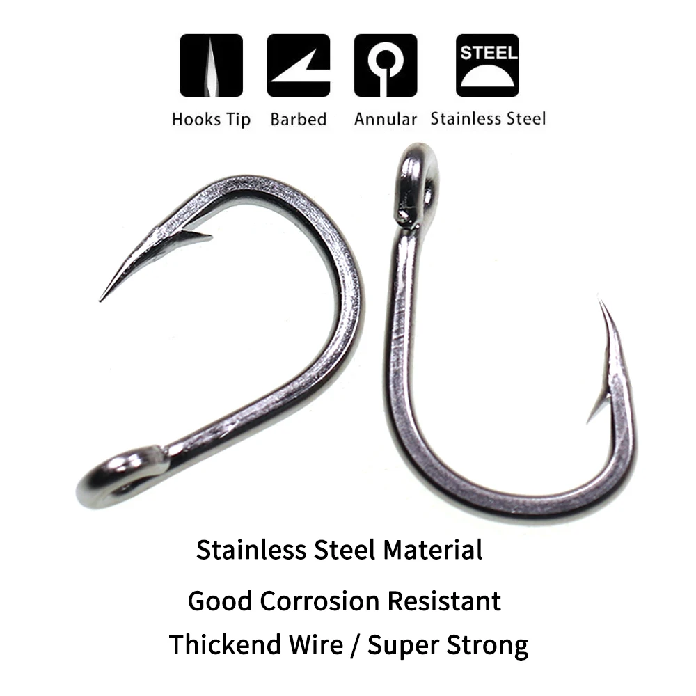 Lionriver 4/0 - 10/0 anzuelo grande de acero inoxidable, anzuelo grueso de calibre, anzuelo de Pesca de Mar pesado, anzuelo de asistencia