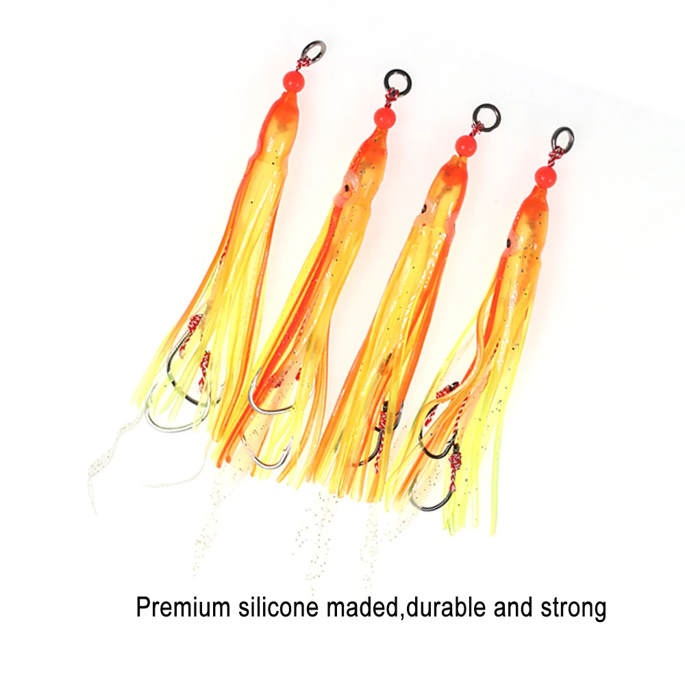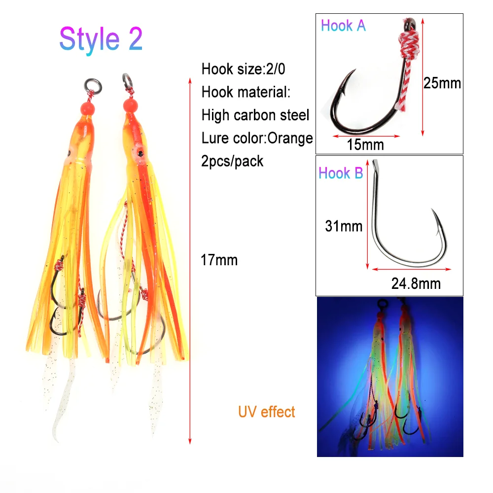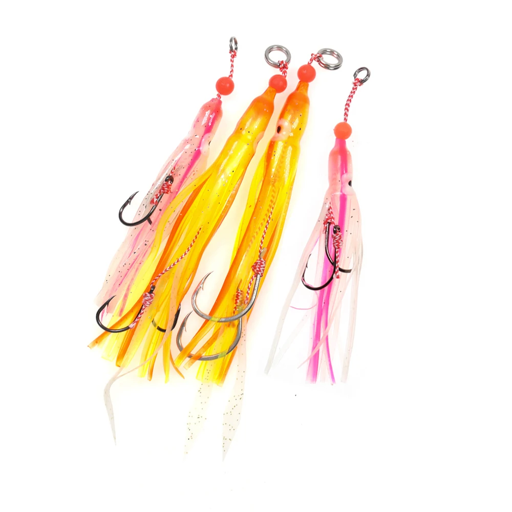 Gancho de asistencia de plantilla de pulpo luminoso de Lion River falda de silicona suave Gancho Doble cebo de Snapper de calamar aparejos de pesca de agua dulce