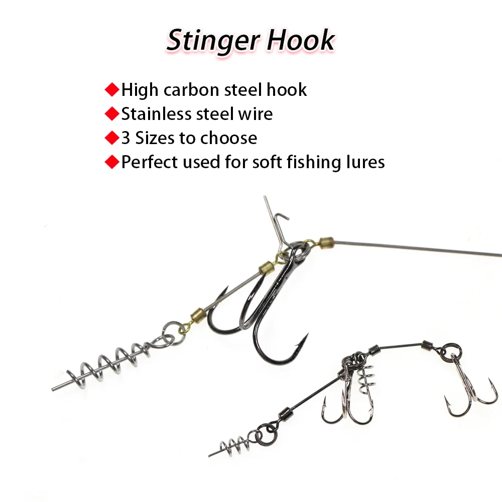 Anzuelo de pesca Lionriver Stinger, anzuelo doble triple con conector de tornillo de pasador para señuelo de pesca suave, aparejos de pesca de lucio, perca