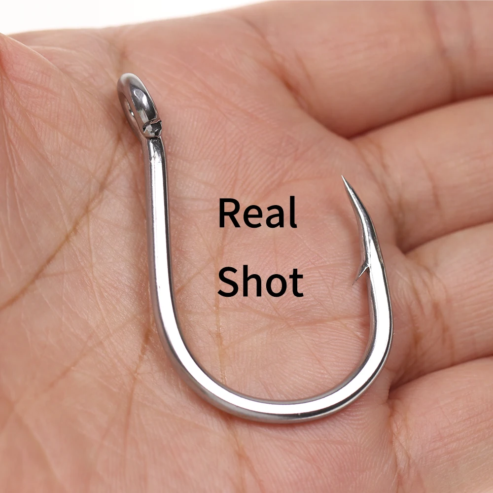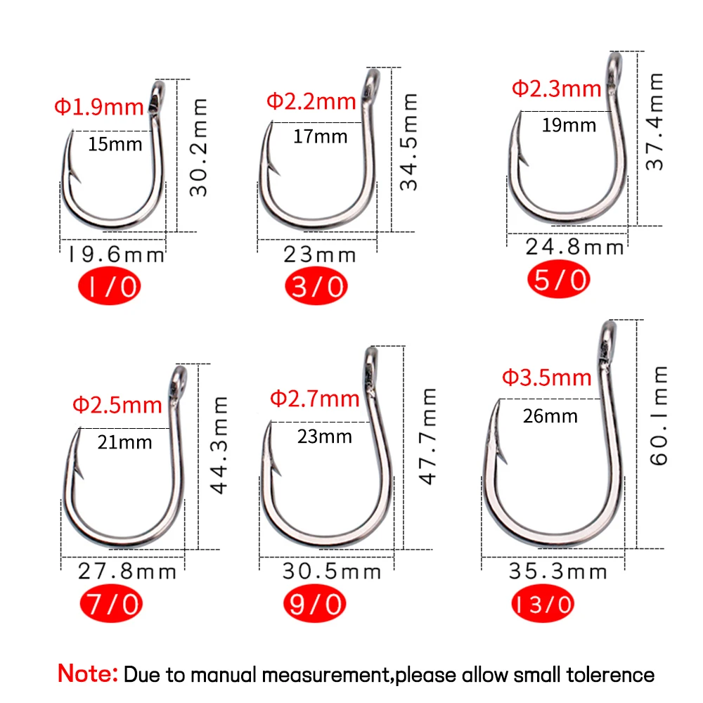 Elllv #1/0-13/0 Anzuelos de Jigging Fuertes de Gape Ancho Acero Inoxidable 420 Anzuelo de Asistencia en Línea Pesca en Agua Salada Mero Pargo Atún Tiburón