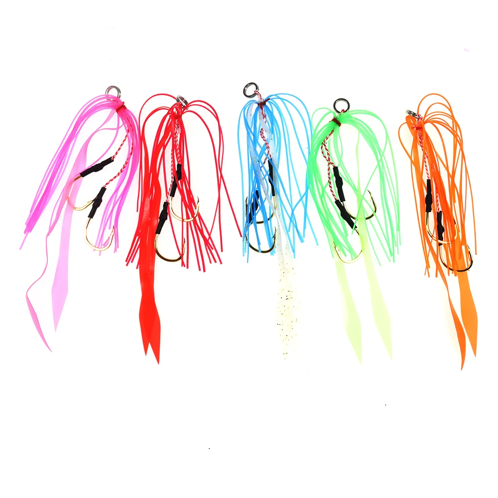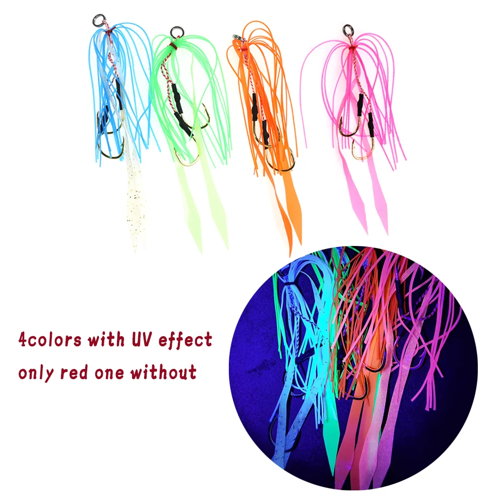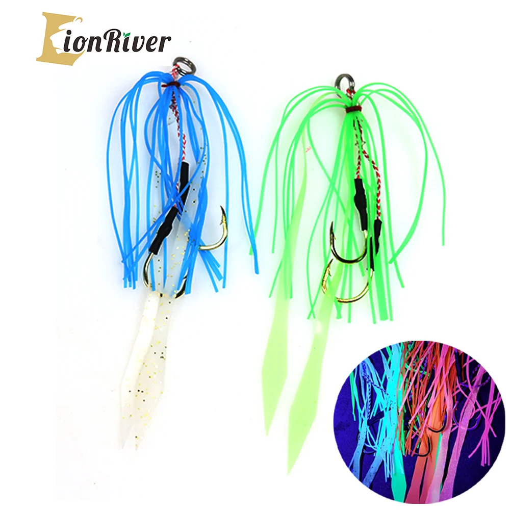 Juego de señuelo de remolque de pesca de agua salada con anzuelo de goma de silicona de 8 piezas de Lion River