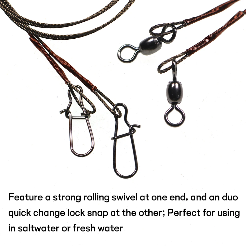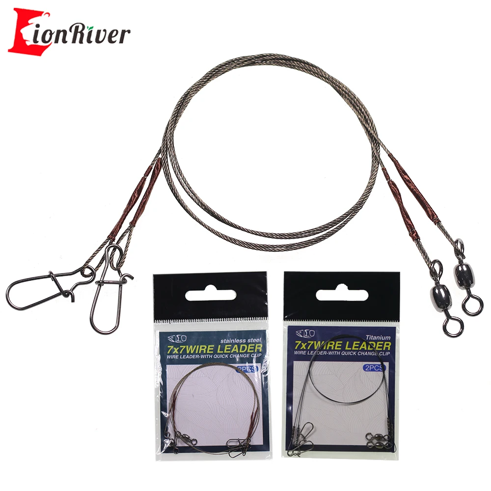 Lionriver, Correa antimordedura para pesca, línea líder de pesca de titanio, alambre de acero inoxidable 7*7 con Clip de cambio rápido giratorio rodante