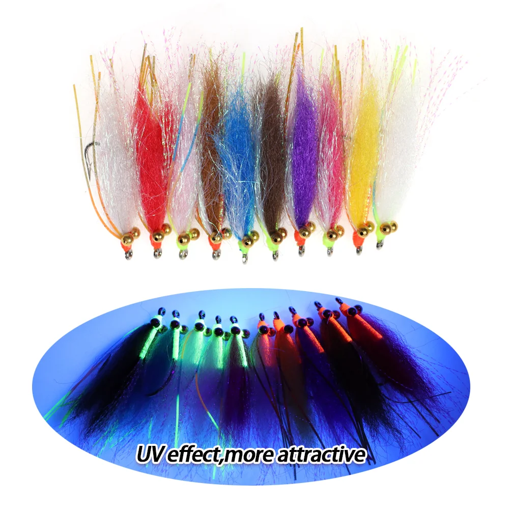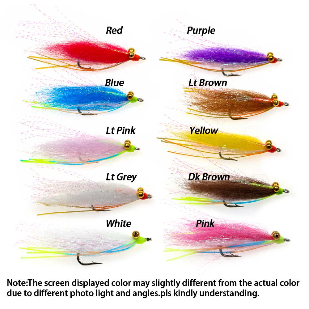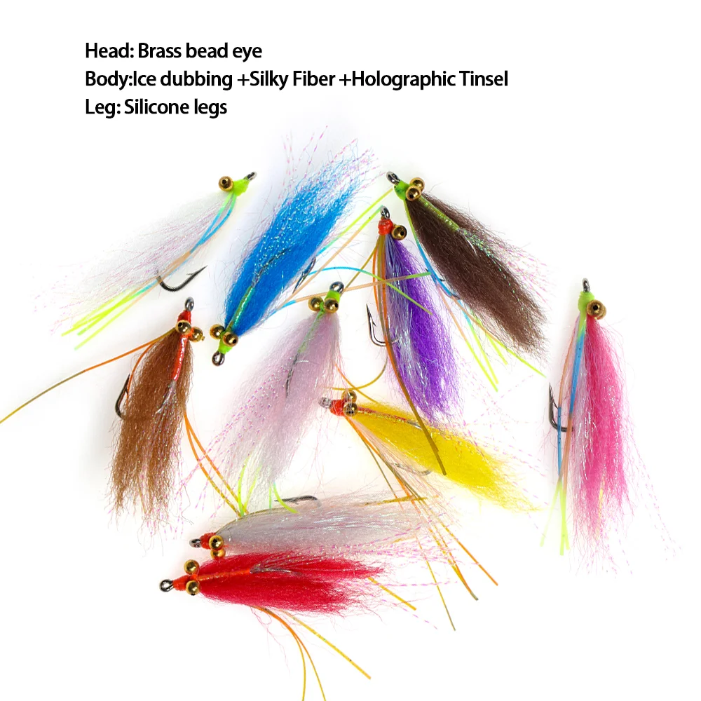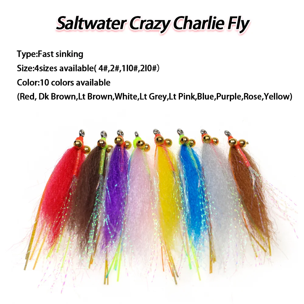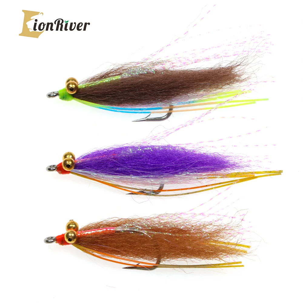 LIONRIVER Crazy Charlie Fly Gancho de acero al carbono Hundimiento rápido Pesca moscas lubina trucha agua salada serpentina cebo de pesca con mosca