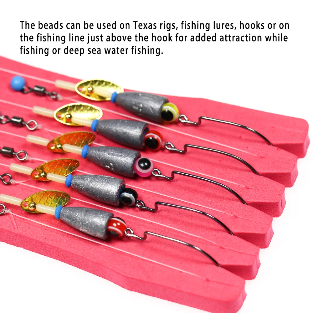 ◆Las cuentas se pueden usar en aparejos de pesca, señuelos, anzuelos o en hilo de pescar justo encima del anzuelo para mayor atracción mientras pesca o pesca en aguas profundas.También puede proteger la cabeza de la caña de pescar y la cámara de flotador.