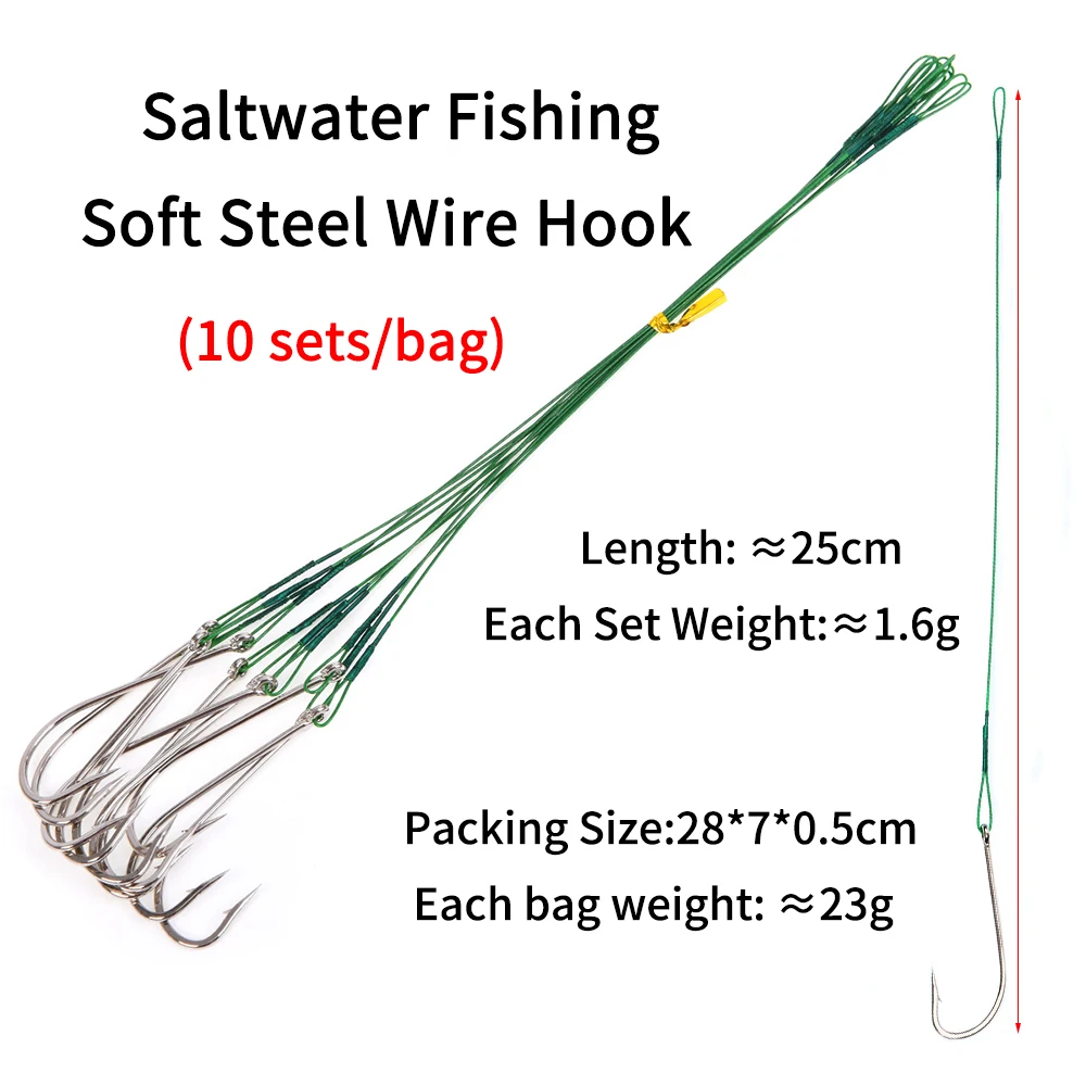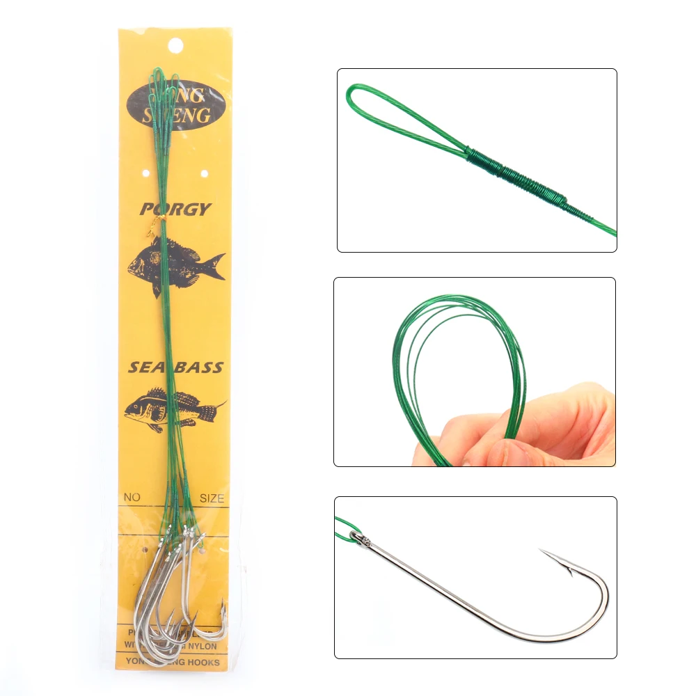 Lionriver 10 unids/pack anzuelo O'shaughnessy con alambre de acero recubierto de nailon anzuelo de alambre de pesca antimordida aparejos de pesca de agua salada