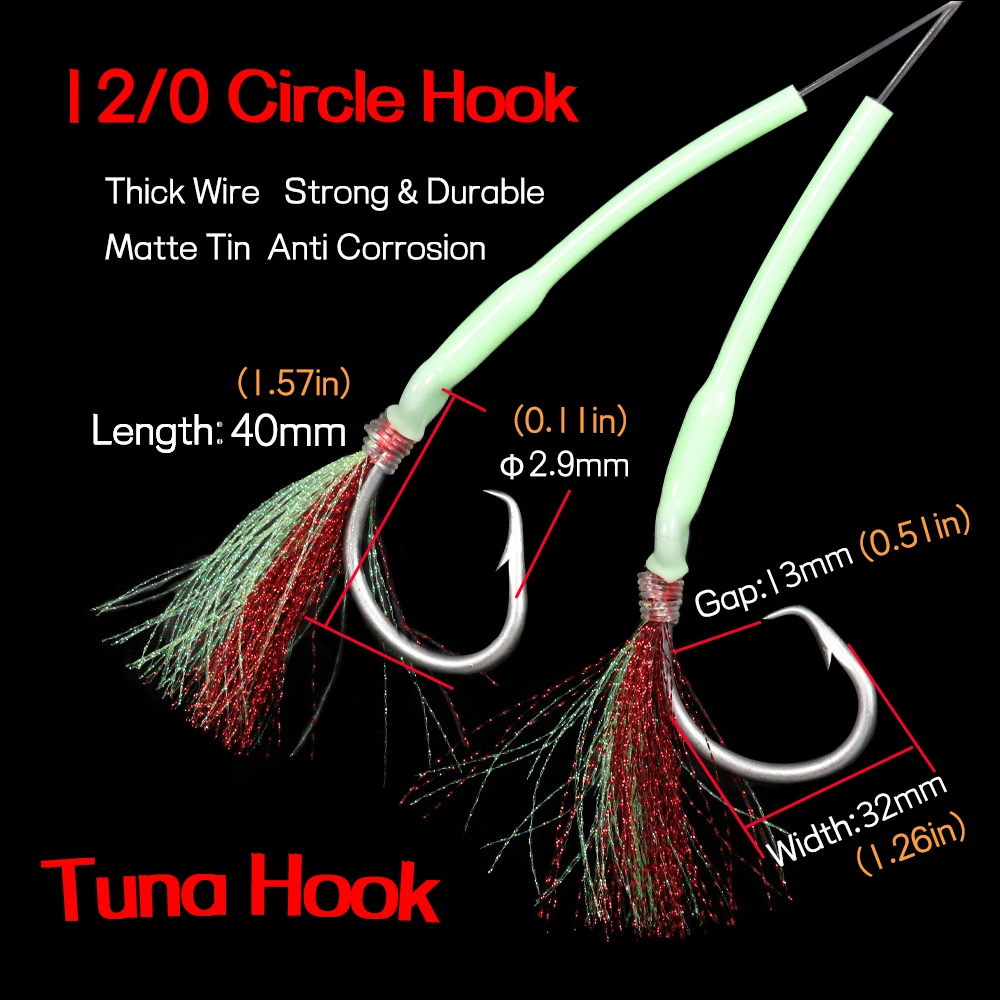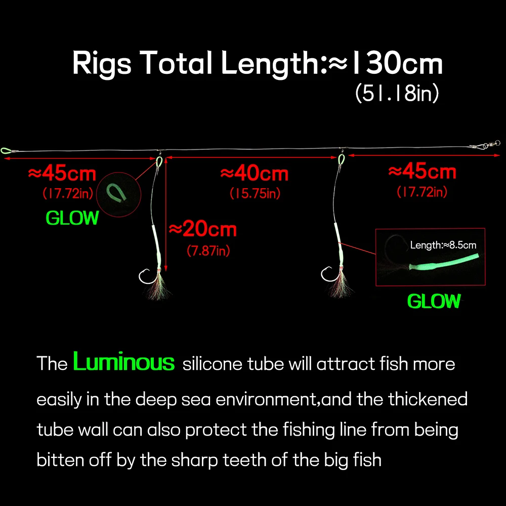2. Aparejos de pesca muy fuertes con tubos gruesos luminosos, atraerán a los peces más fácilmente y evitarán que la línea de pesca sea mordida por el pez grande. 3. Ideal para la pesca en aguas profundas Hapuka Grouper Cod Tuna ECT...