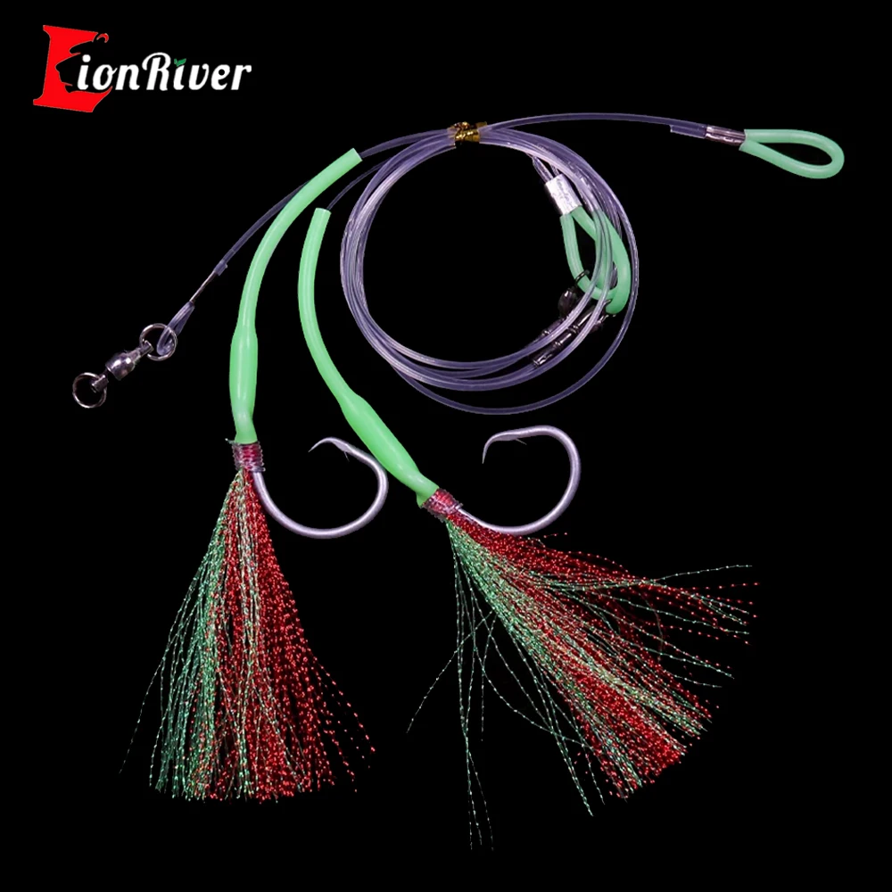 LIONRIVER Hapuka Grouper Cod Sabiki Flasher Rigs Señuelos de pesca artificiales de agua salada Tuna Cirle Hook Luminous Deep Sea Bait
