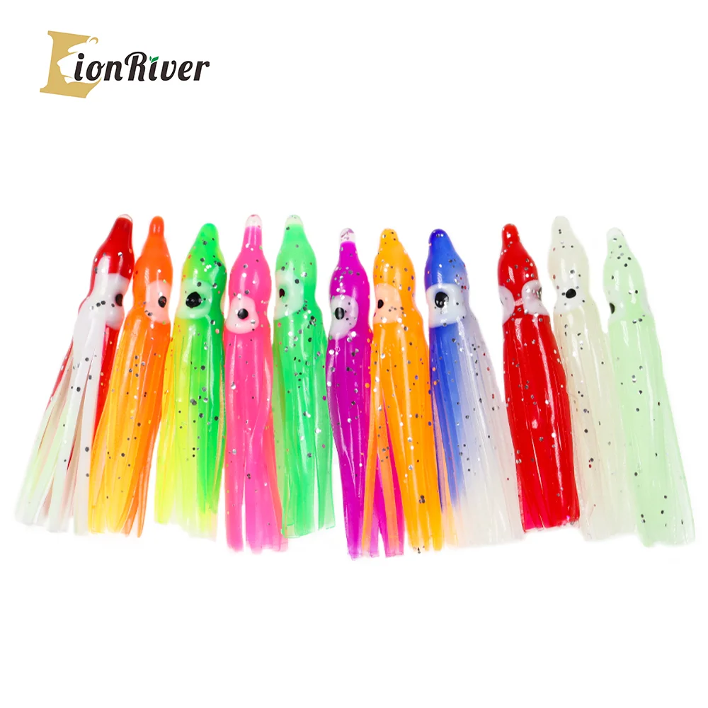 LIONRIVER-Juego de cebos de pesca de agua salada para trucha de salmón, falda de calamar y pulpo de plástico blando de 40, 5cm
