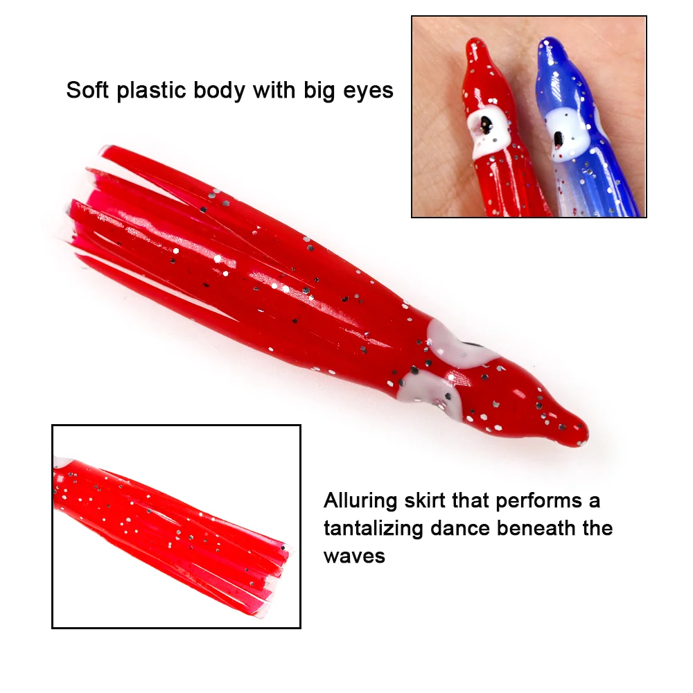 2.Las faldas de calamar tienen un cuerpo de plástico suave y una falda seductora que realiza una danza tentadora bajo las olas.