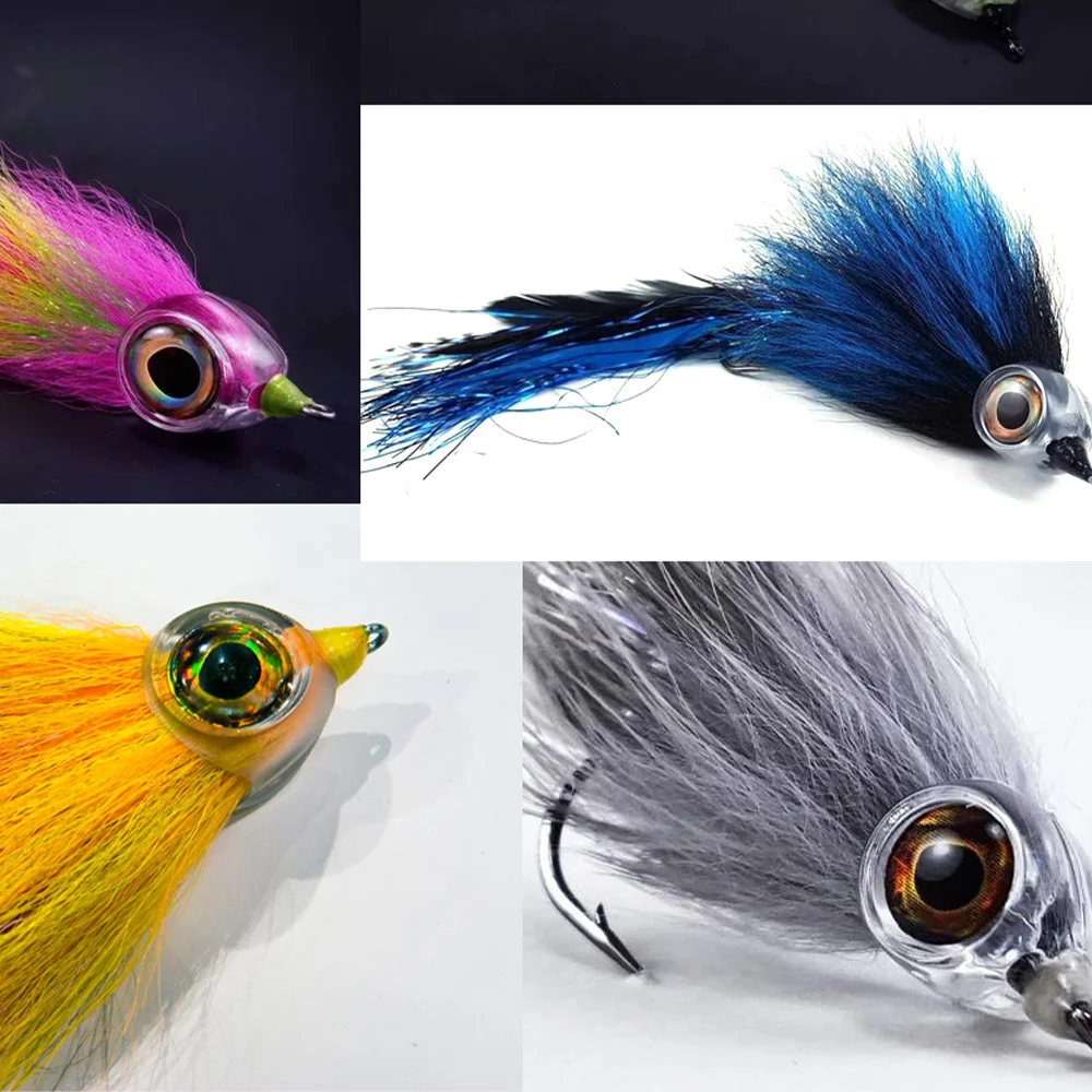 LIONRIVER Máscara de pez para atar moscas, manualidades con serpentinas con ojos, cebo de pesca, material para hacer señuelos, herramientas para encuadernación con mosca, cabeza de pez 3D