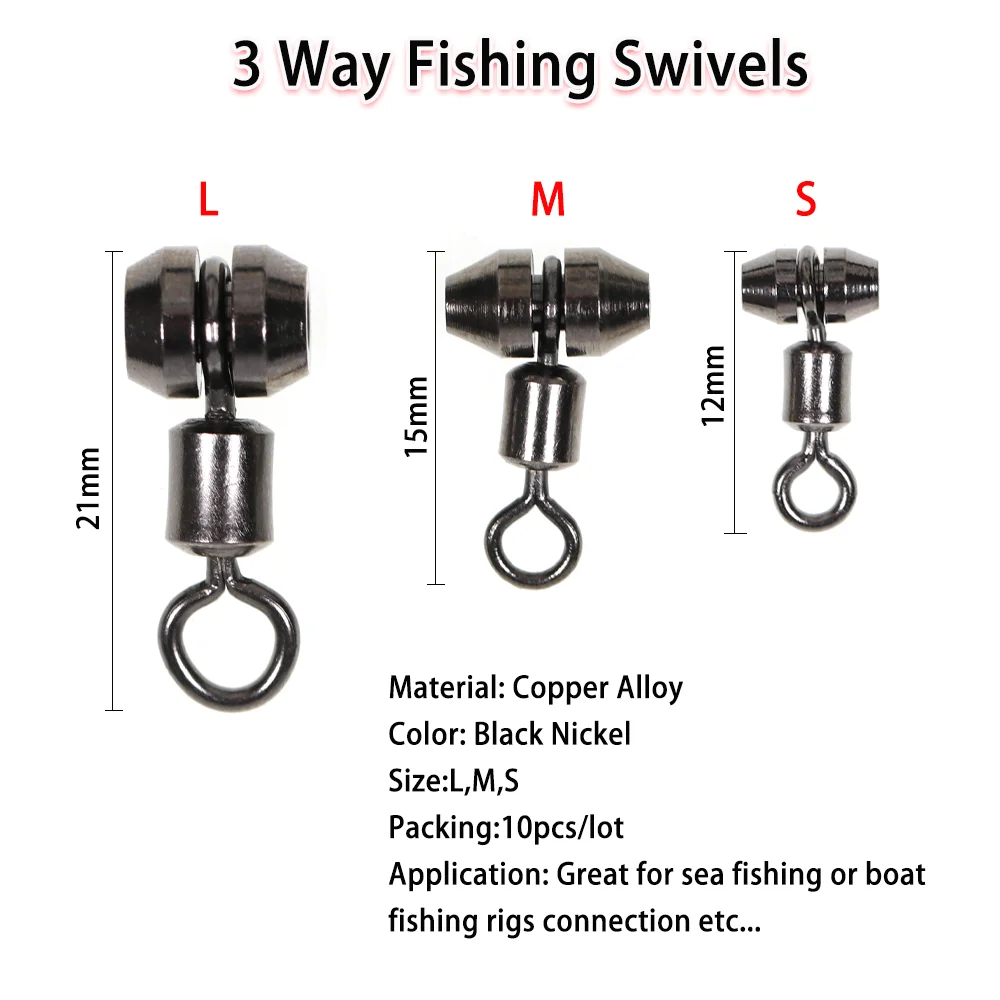 Cojinete de 3 vías con eslabones giratorios de línea cruzada de alta resistencia, eslabones giratorios de pesca de agua dulce y agua salada, accesorios de conector