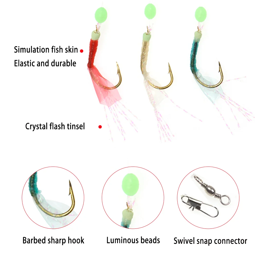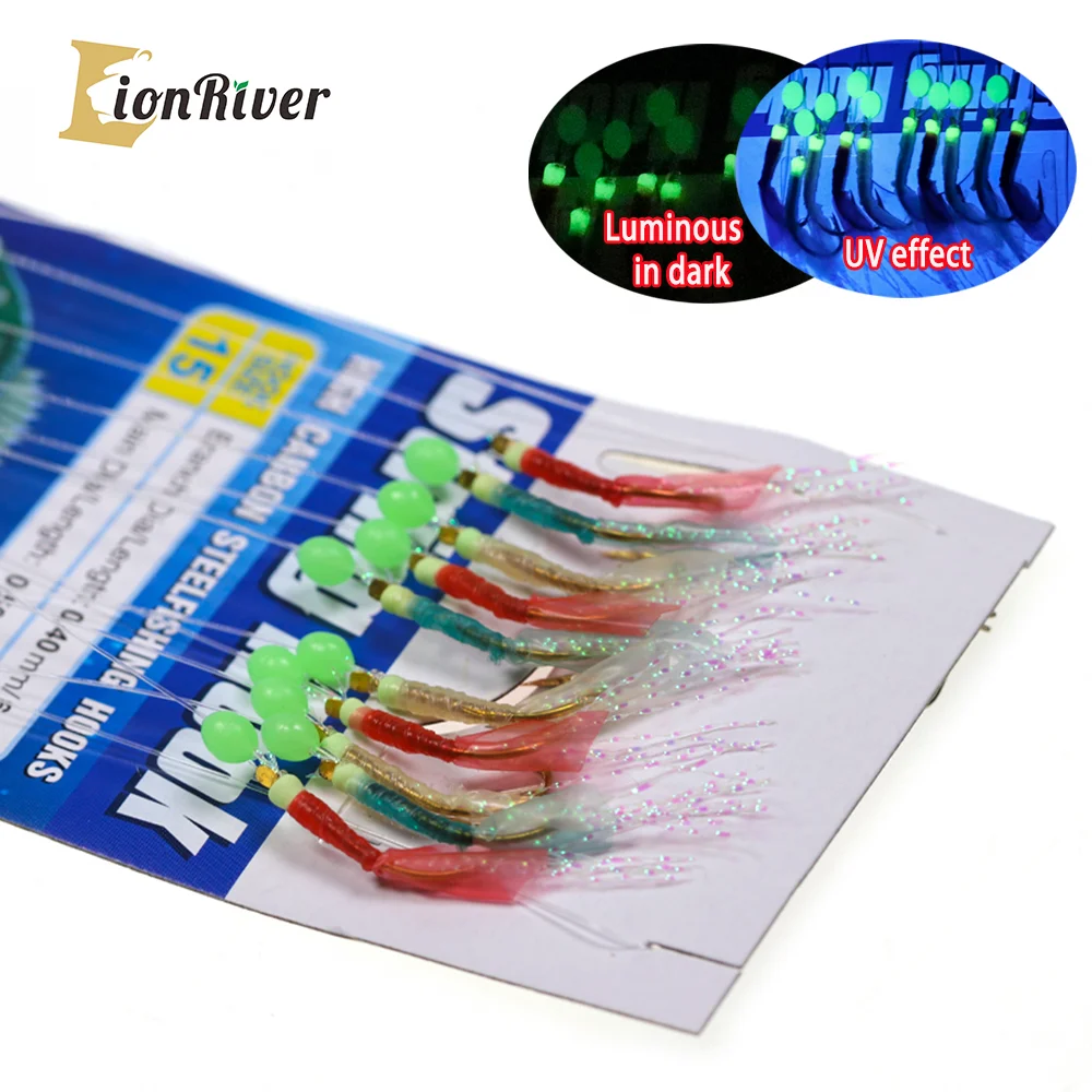 Lionriver Sabiki Rigs Señuelos de Pesca artificiales de agua salada cuentas luminosas cebo de mar Fishskin cadena anzuelos oropel giratorio SnapTackle