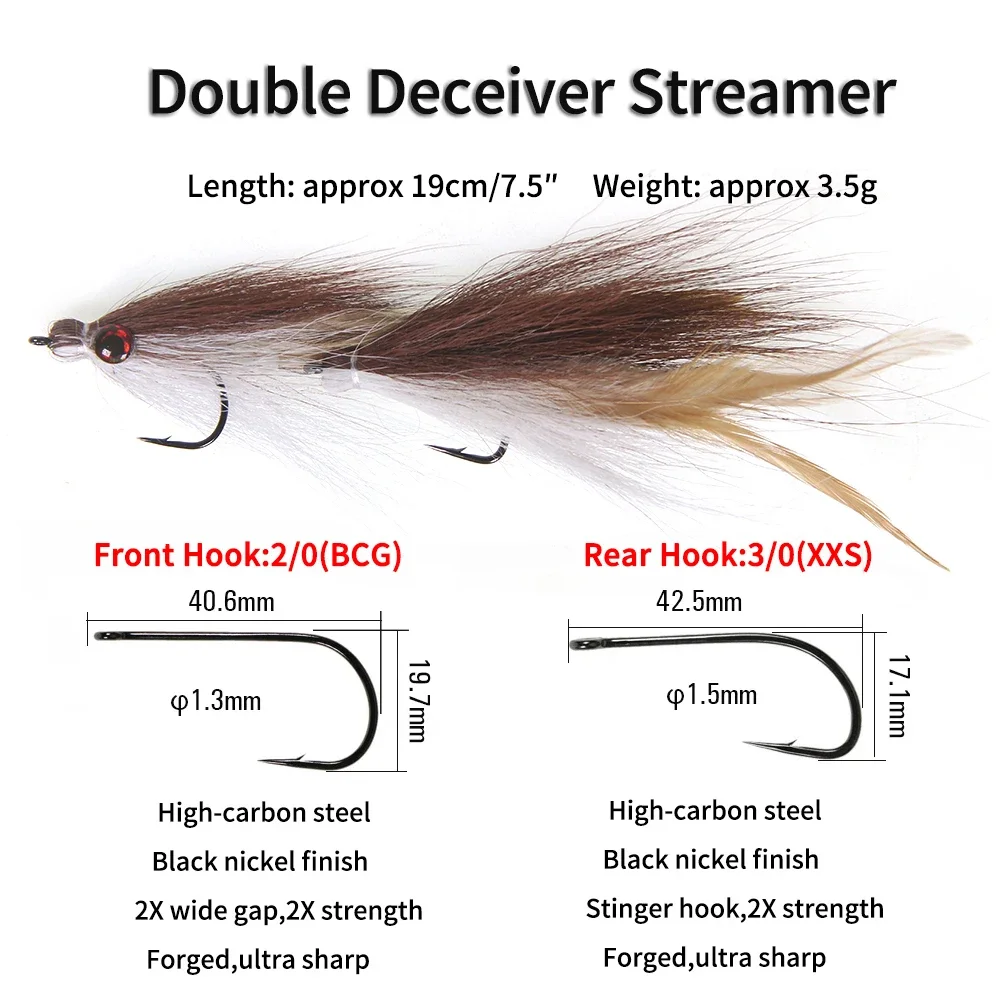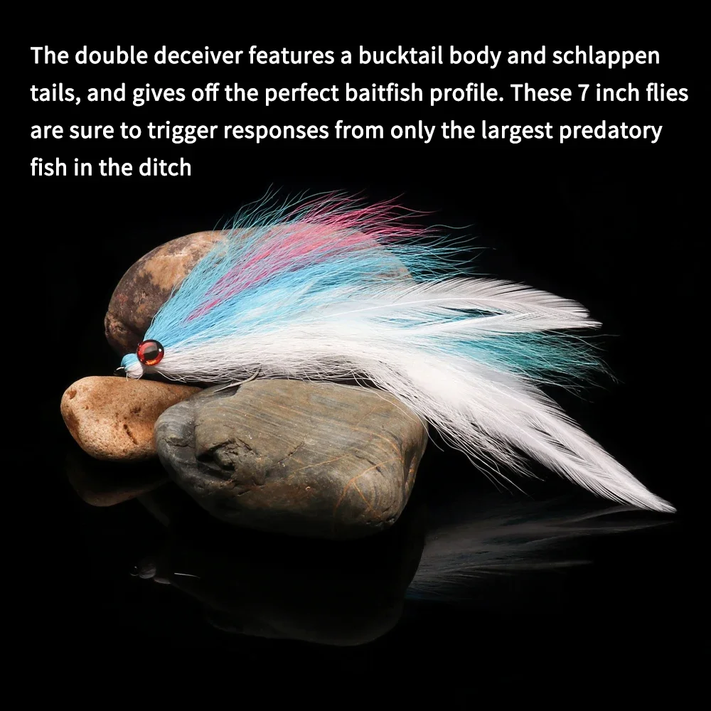 Lionriver 7,5 ″ Bucktail Body Big Baitfish Fly Double Deceiver Señuelo de serpentina articulado para lubina Lucio Steelhead Pesca