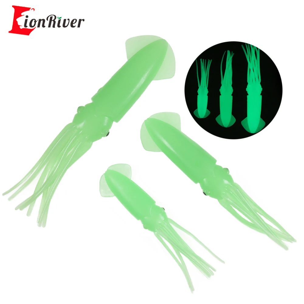 Lionriver 9g/18g/29G señuelo de calamar suave brillo pesca de agua salada curricán señuelo luminoso verde pulpo faldas cebo Jigging artificial