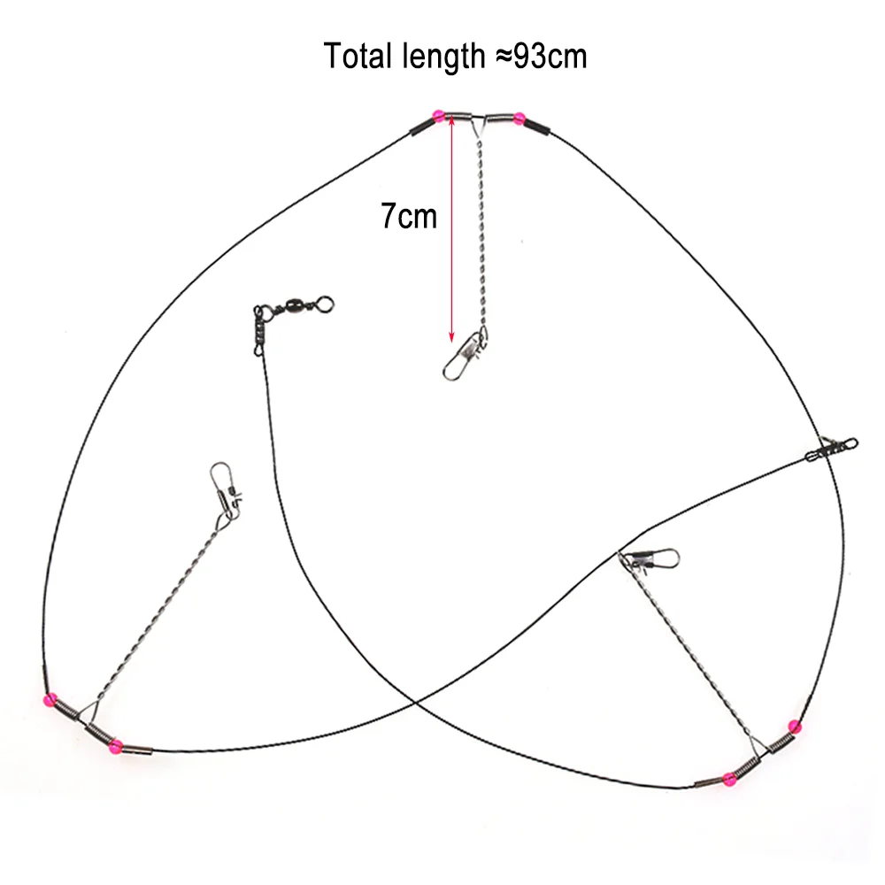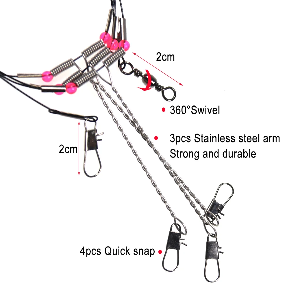 Compuesto por 5 anzuelos de penetración afilados, ayuda a aumentar la tasa de peces que suben al anzuelo.