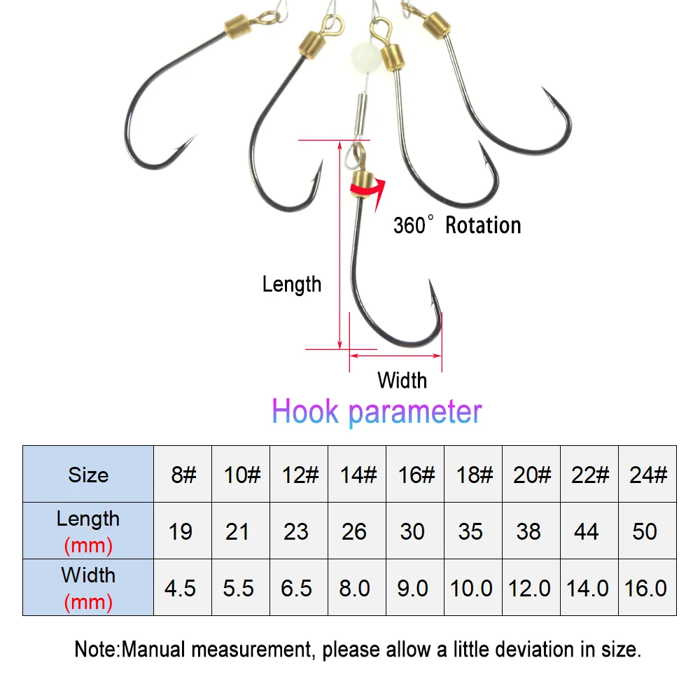 Tamaño del gancho: 8# 10# 12# 14# 16# 18# 20# 22# 24#Material del alambre: acero inoxidable