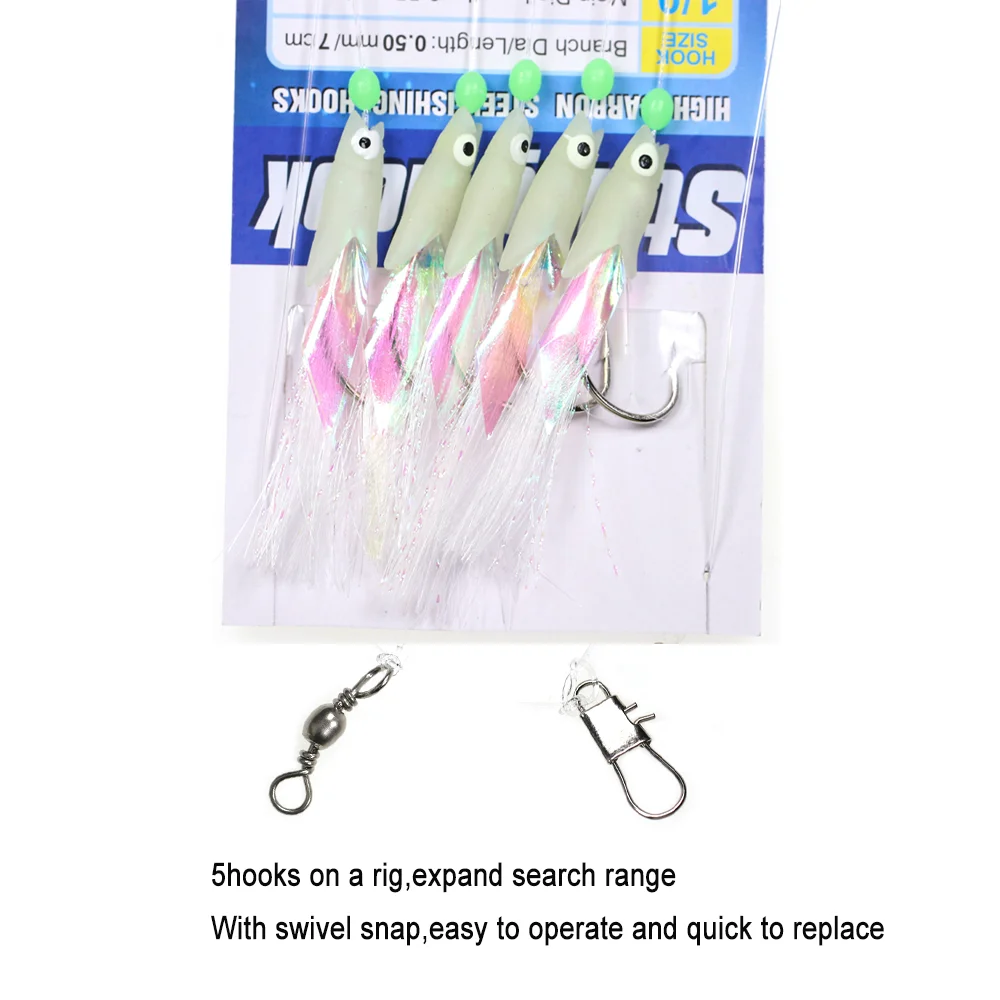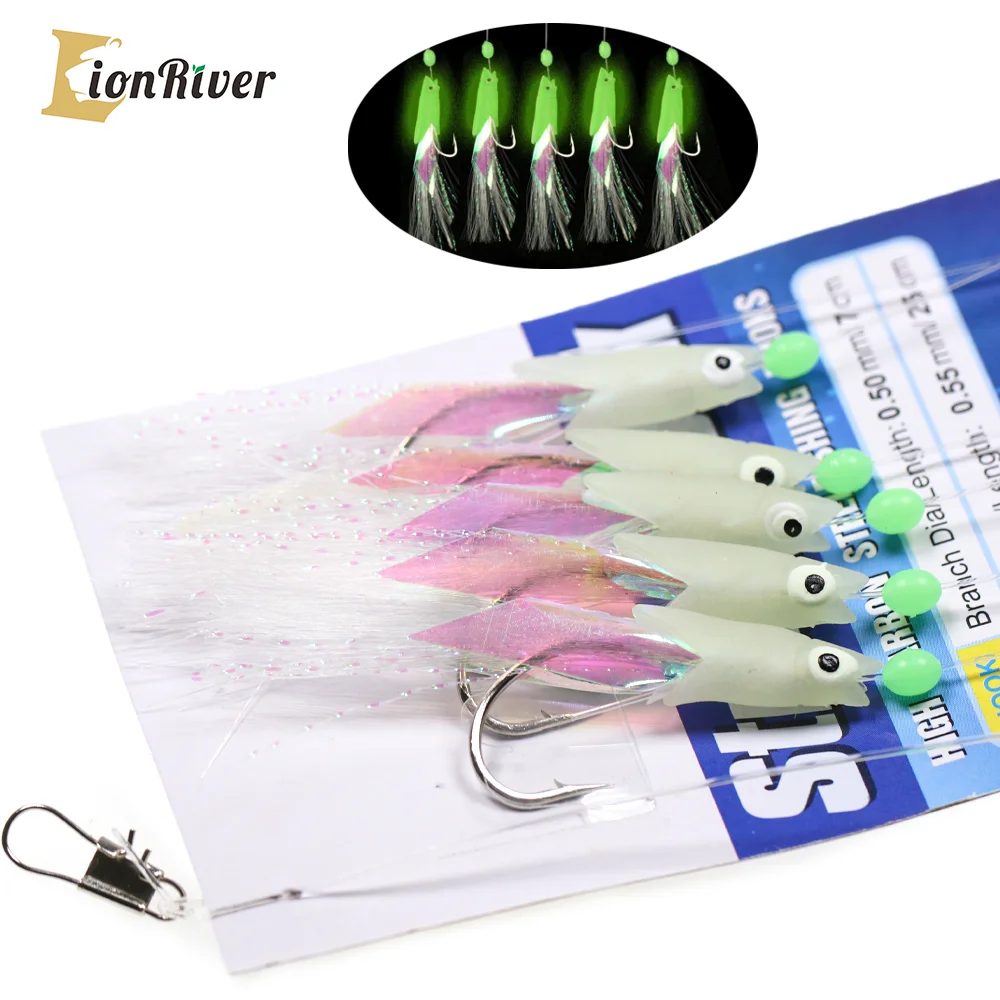 Lionriver Piel de pez simulada Flash cadena luminosa anzuelos Sabiki Rigs mar agua salada agua dulce pesca señuelo cebo conjunto aparejos