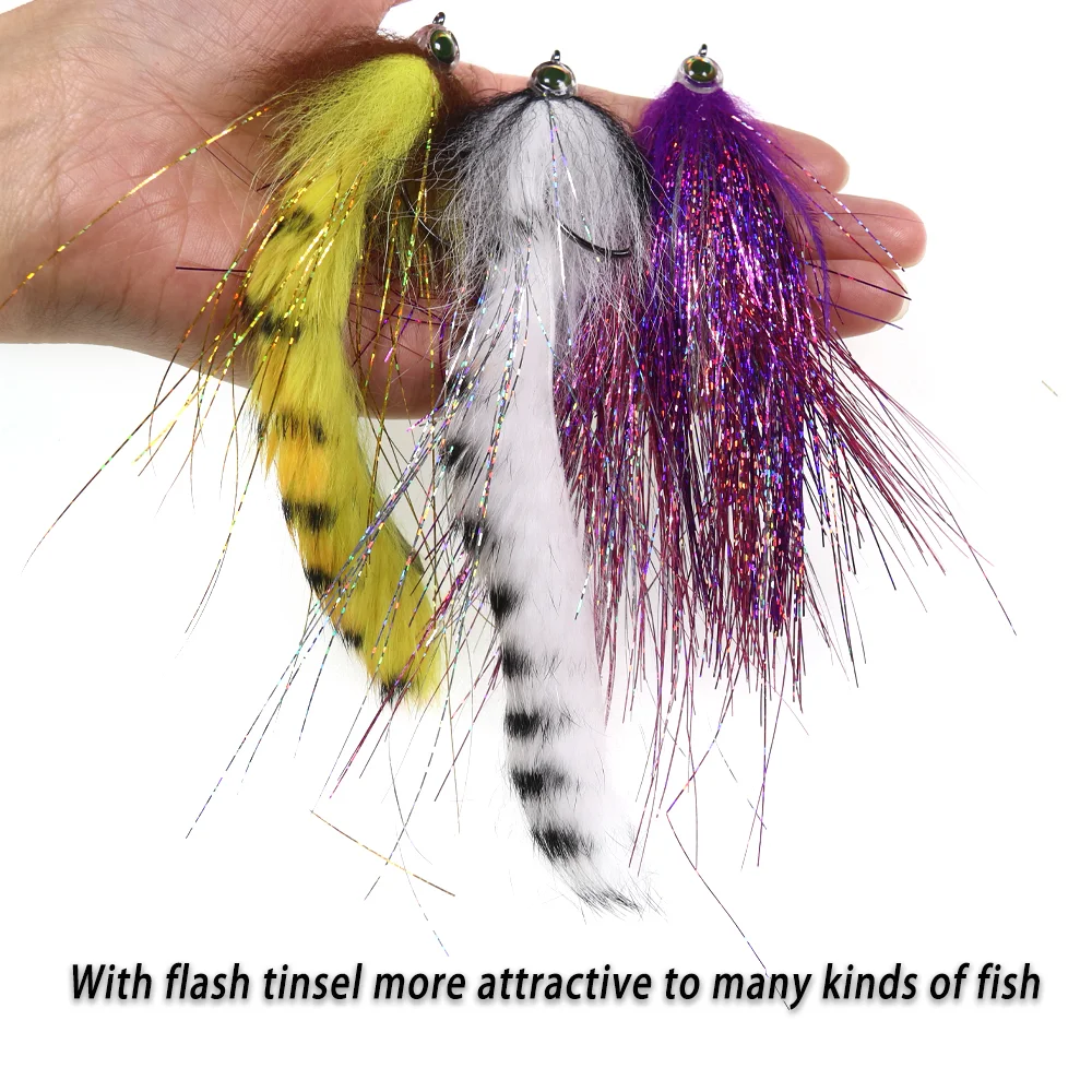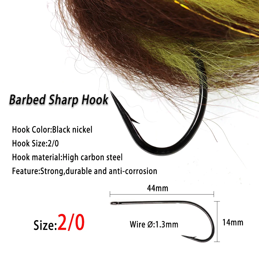 Cebo de pesca de agua salada de Lion River Streamer Fly Suspending Streamer Musky Bass Pike Salmon señuelo de pesca vuela con anzuelo de acero de alto carbono